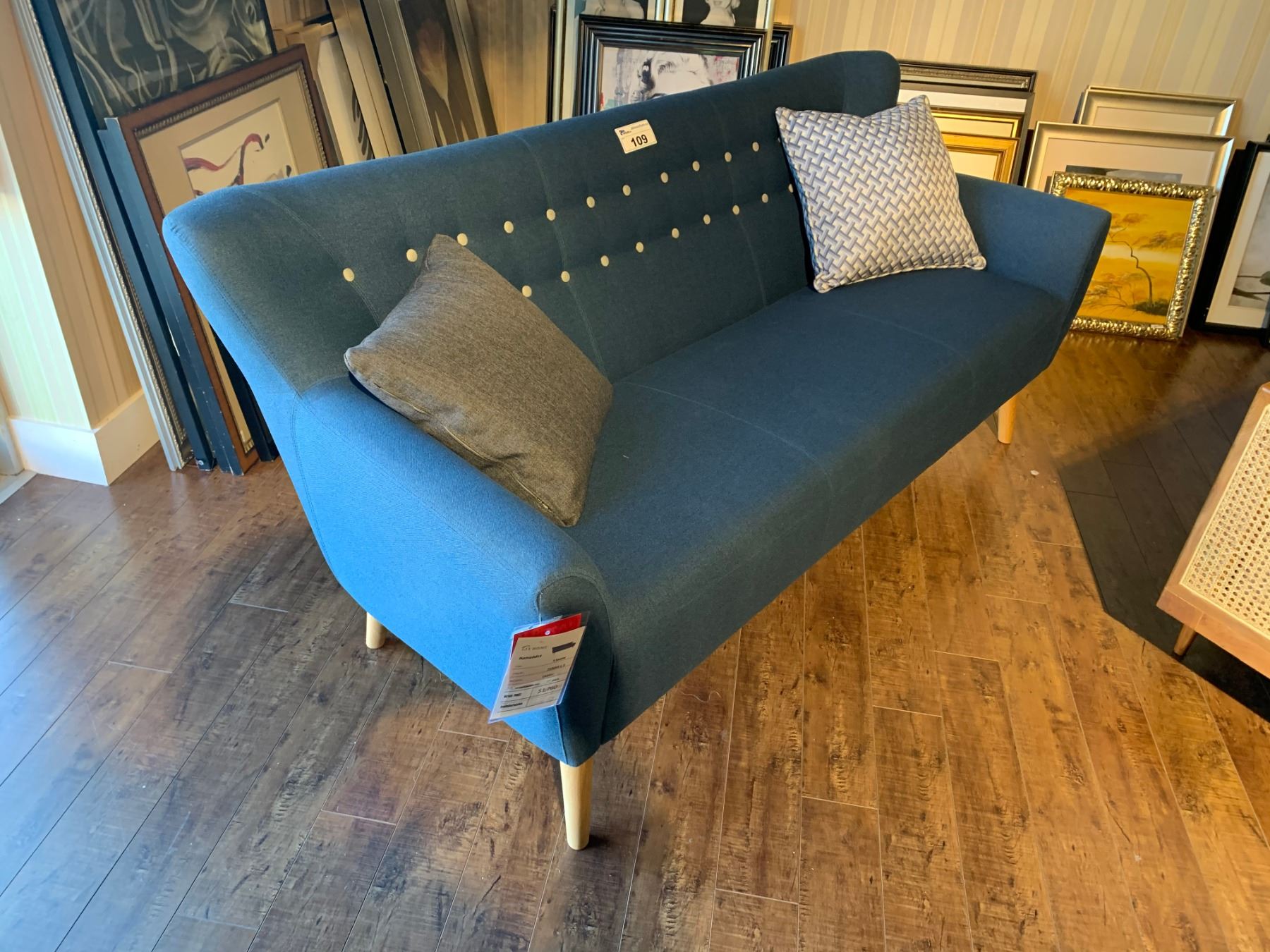 HOMEATTIC BLUE FABRIC MODERN 3 SEAT SOFA WITH CUSHIONS 1970 X 825 X 860 MM MSRP $1,760