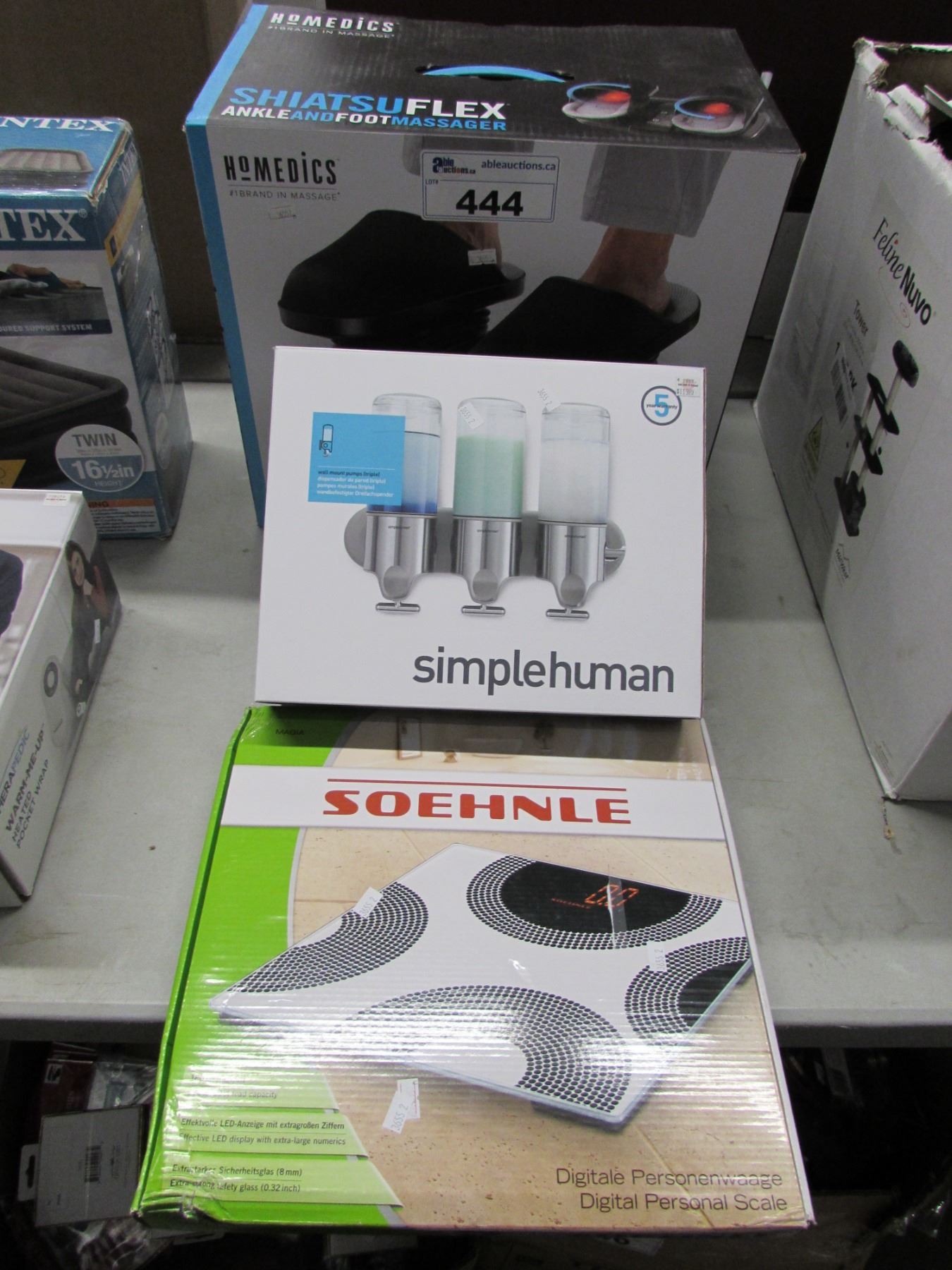 HOMEDICS SHIATSU FLEX ANKLE & FOOT MASSAGER, SIMPLEHUMAN DISPENSER, SOEHNLE PERSONAL SCALE