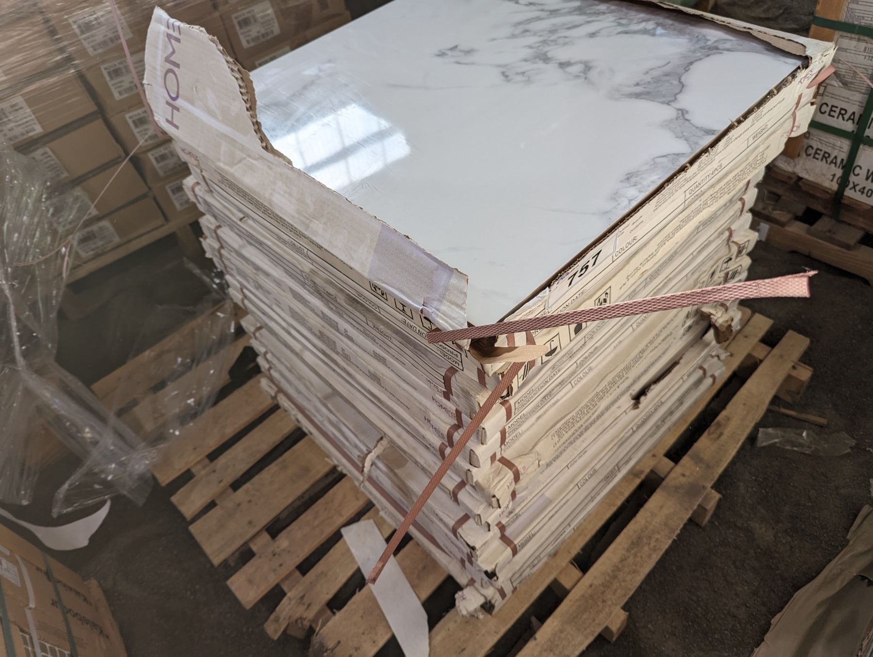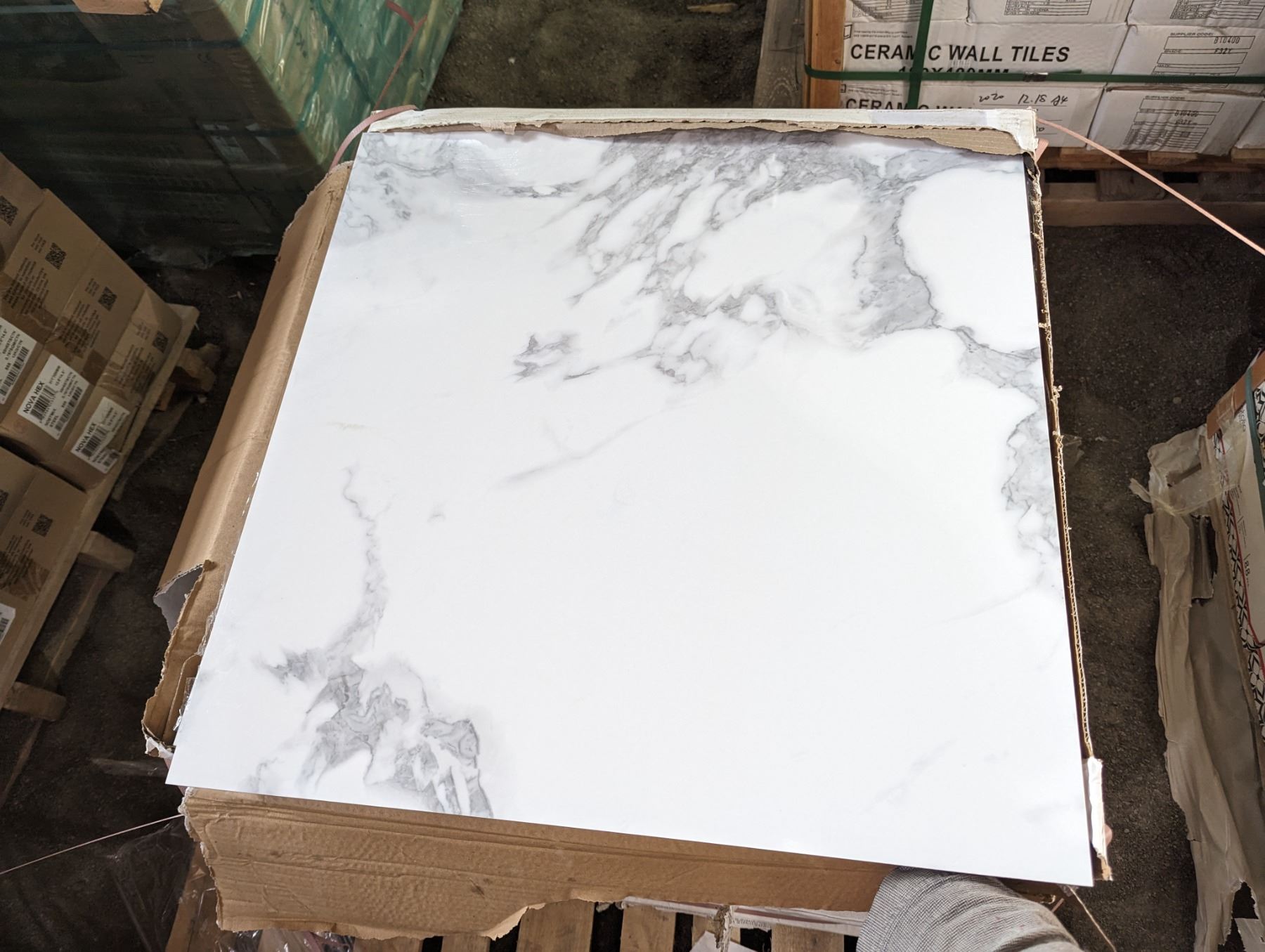 HOMES BUILDING MATERIALS "CARRARA MARBLE COLOUR" CERAMIC TILES 24" X 24" X 4PCS X 16 SQ FT PER BOX X 17 BOX TOTAL COVERAGE APPROX 272 SQ FT