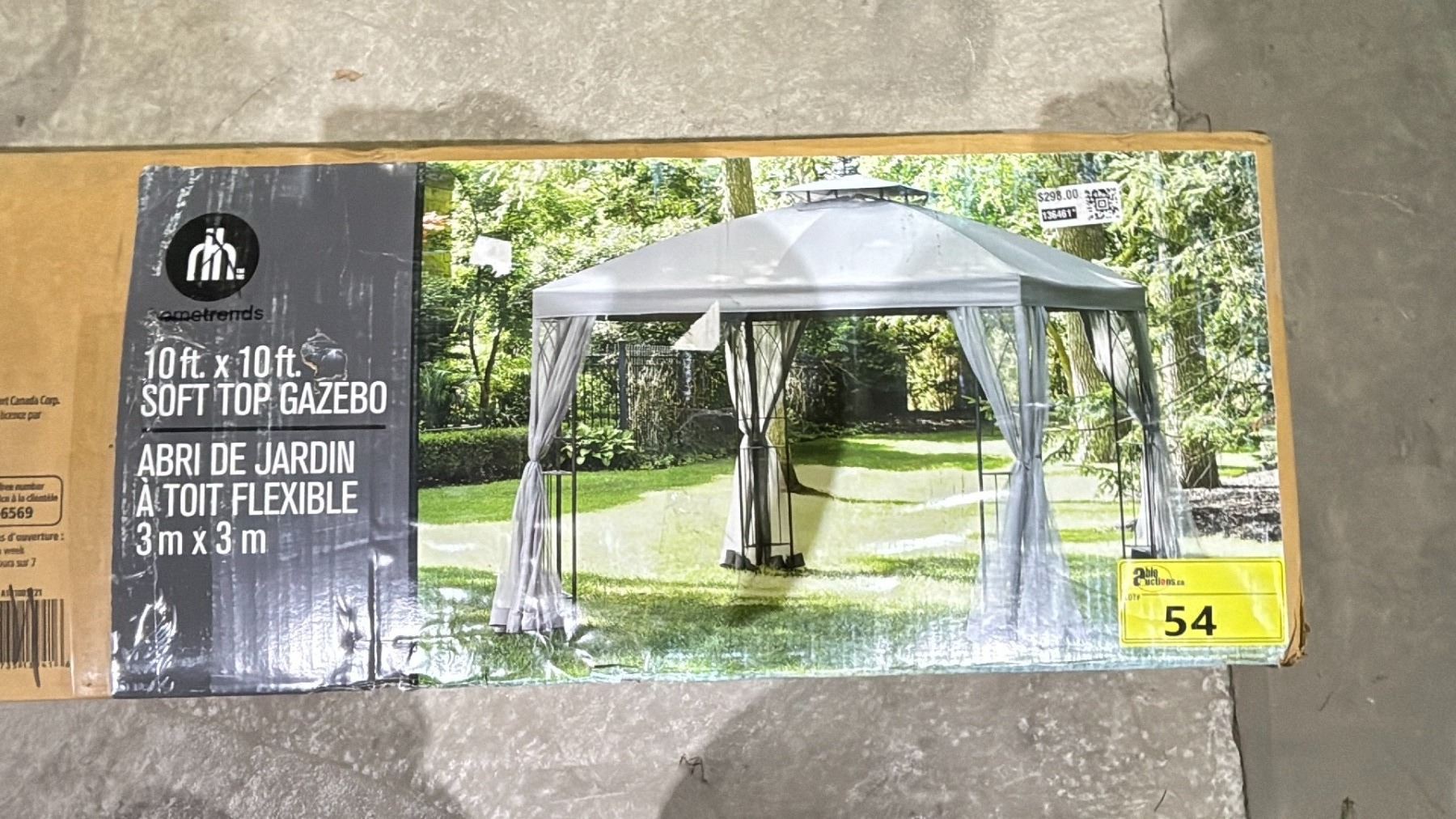 HOMETRENDS 10' X 10' SOFT TOP GAZEBO (MAY BE MISSING PARTS & PIECES)