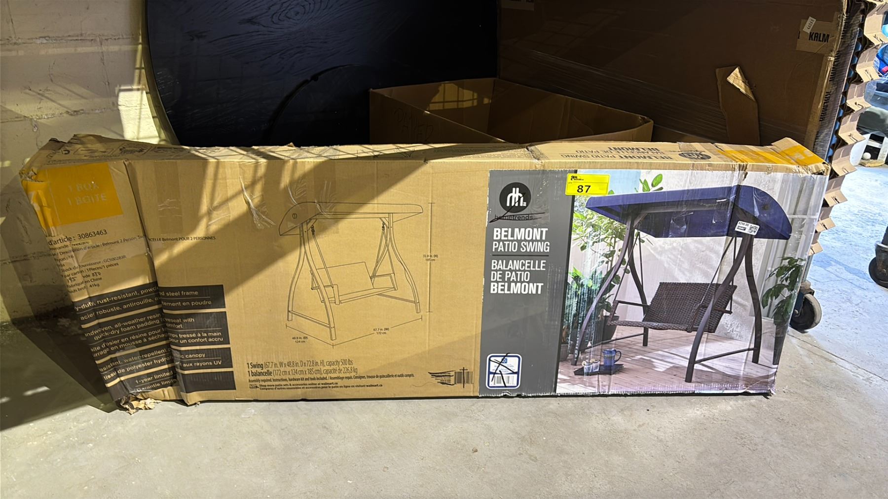 HOMETRENDS BELMONT PATIO SWING (MAY BE MISSING PARTS & PIECES)\