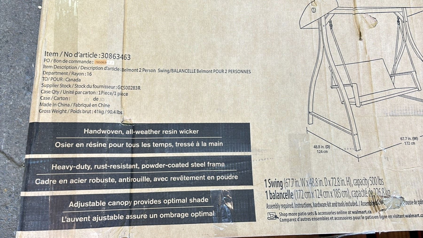 HOMETRENDS BELMONT PATIO SWING (MAY BE MISSING SOME HARDWARE)