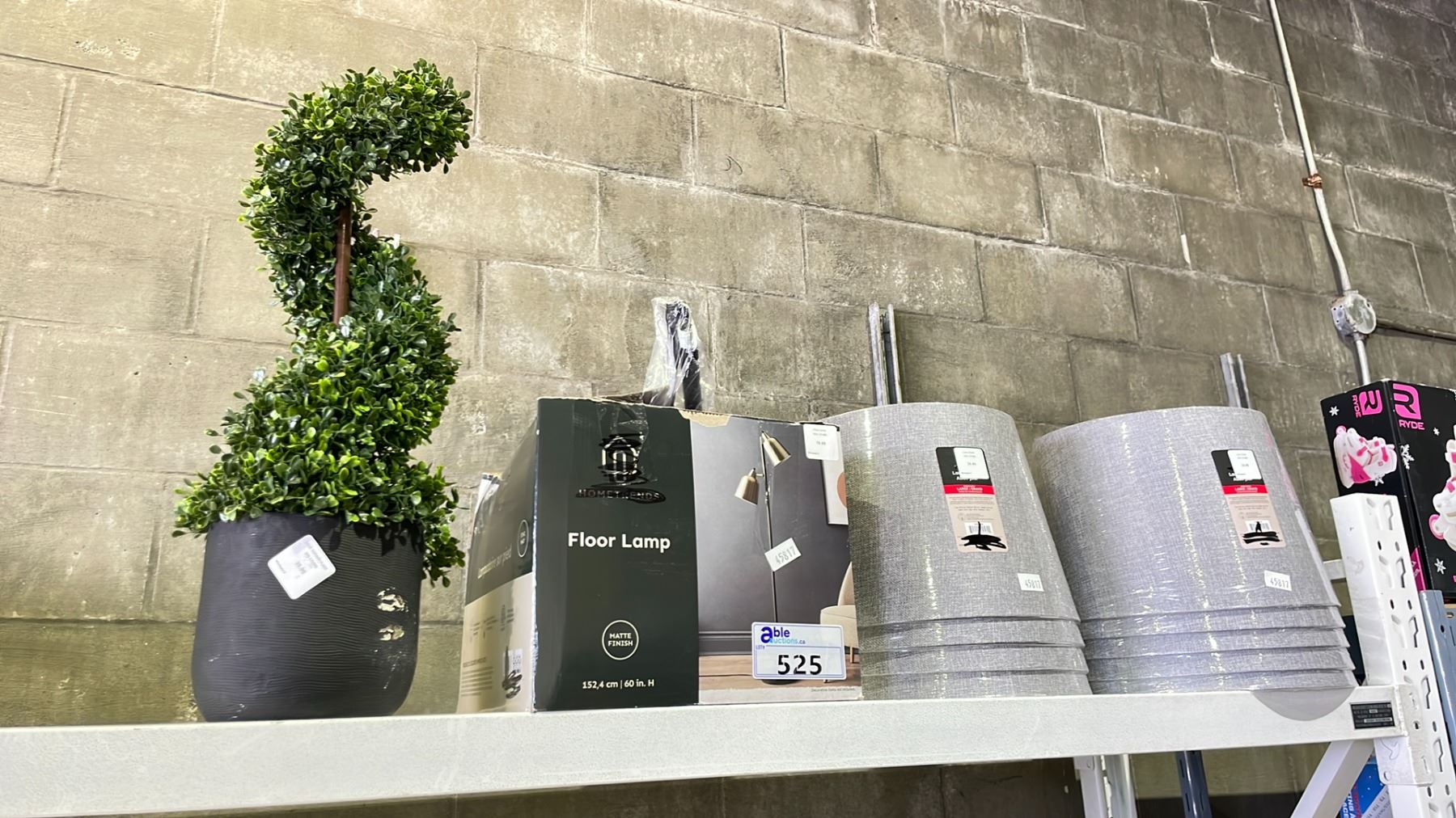 HOMETRENDS FLOOR LAMP, FAUX PLANT & ASSORTED LAMP SHADES