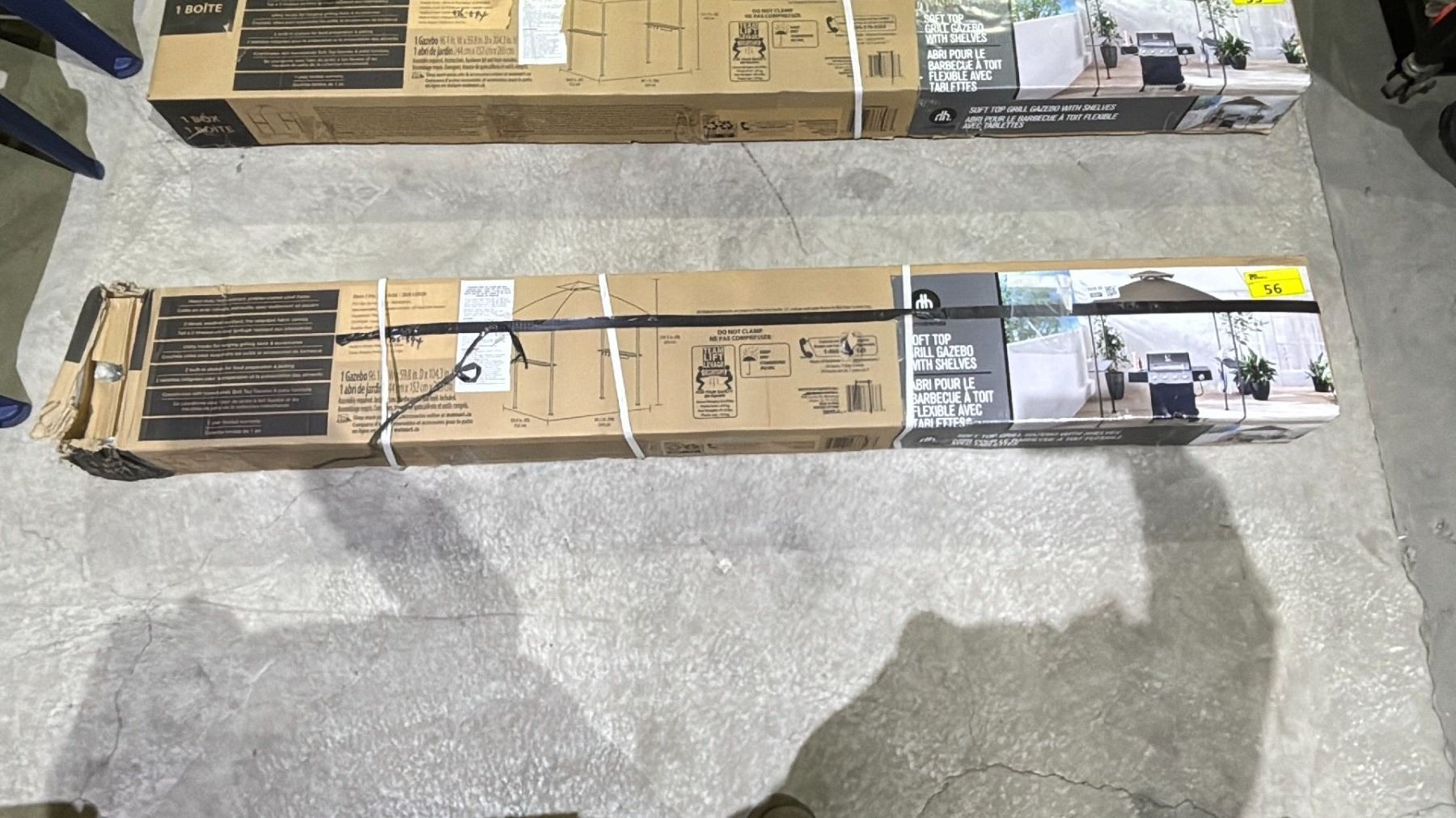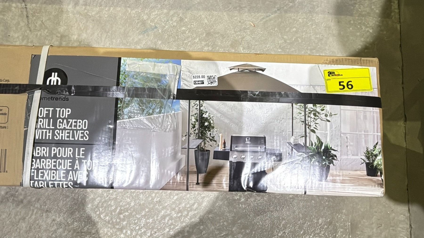 HOMETRENDS SOFT TOP GRILL GAZEBO WITH SHELVES (MAY BE MISSING PARTS & PIECES)