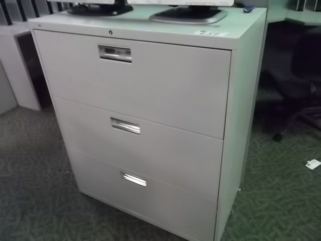 HON GREY 3 DRAWER LATERAL FILE CABINET