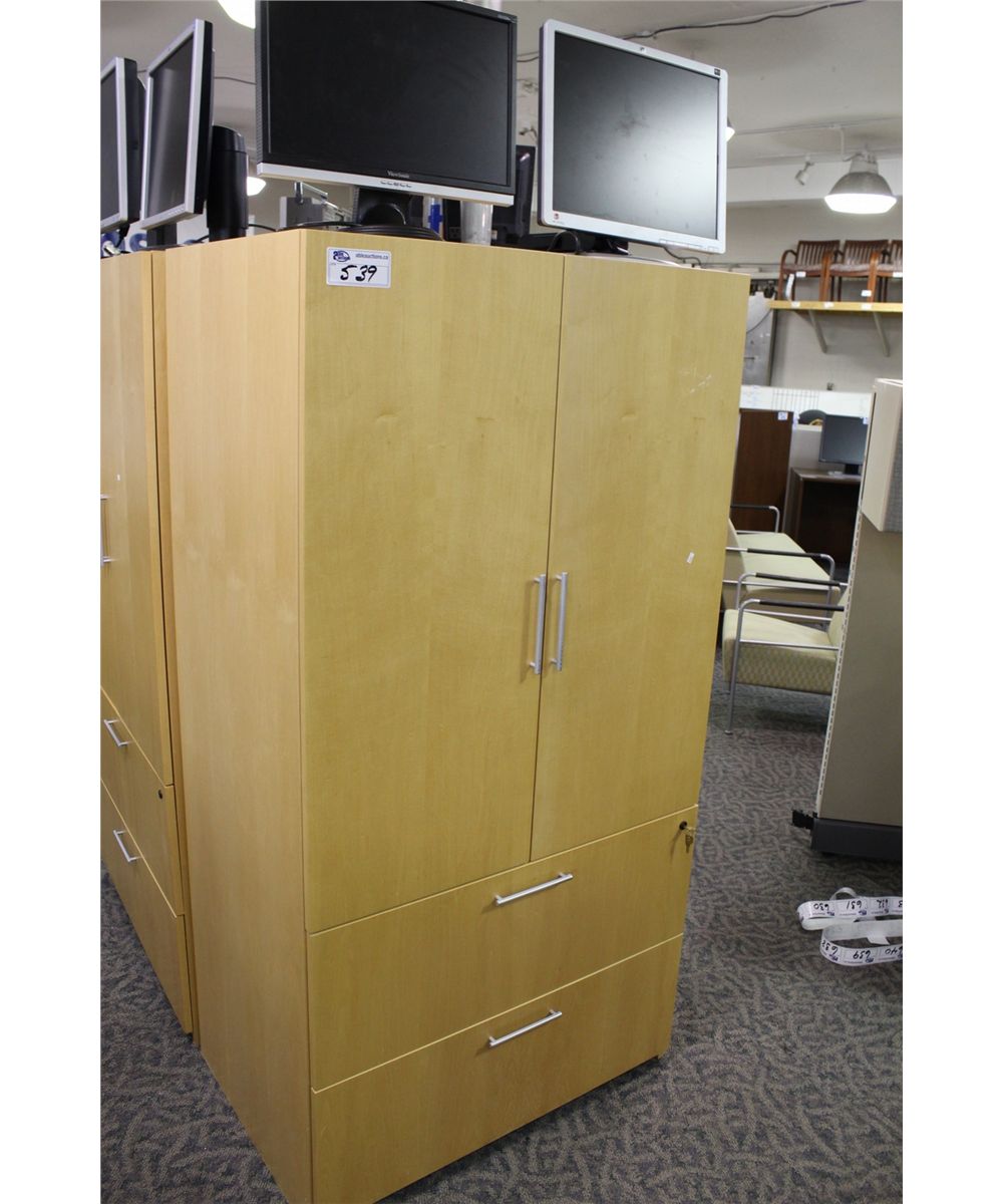 HONEY MAPLE 2-DRAWER LATERAL FILE CABINET W/DOUBLE DOOR CABINET