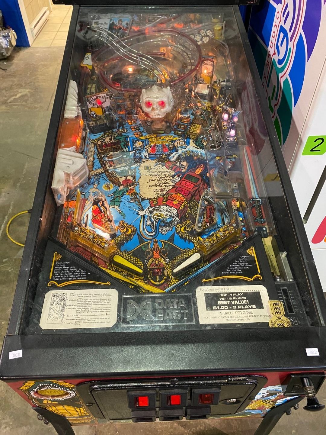 HOOK DATA EAST PINBALL MACHINE, FLIPPERS NOT STRONG