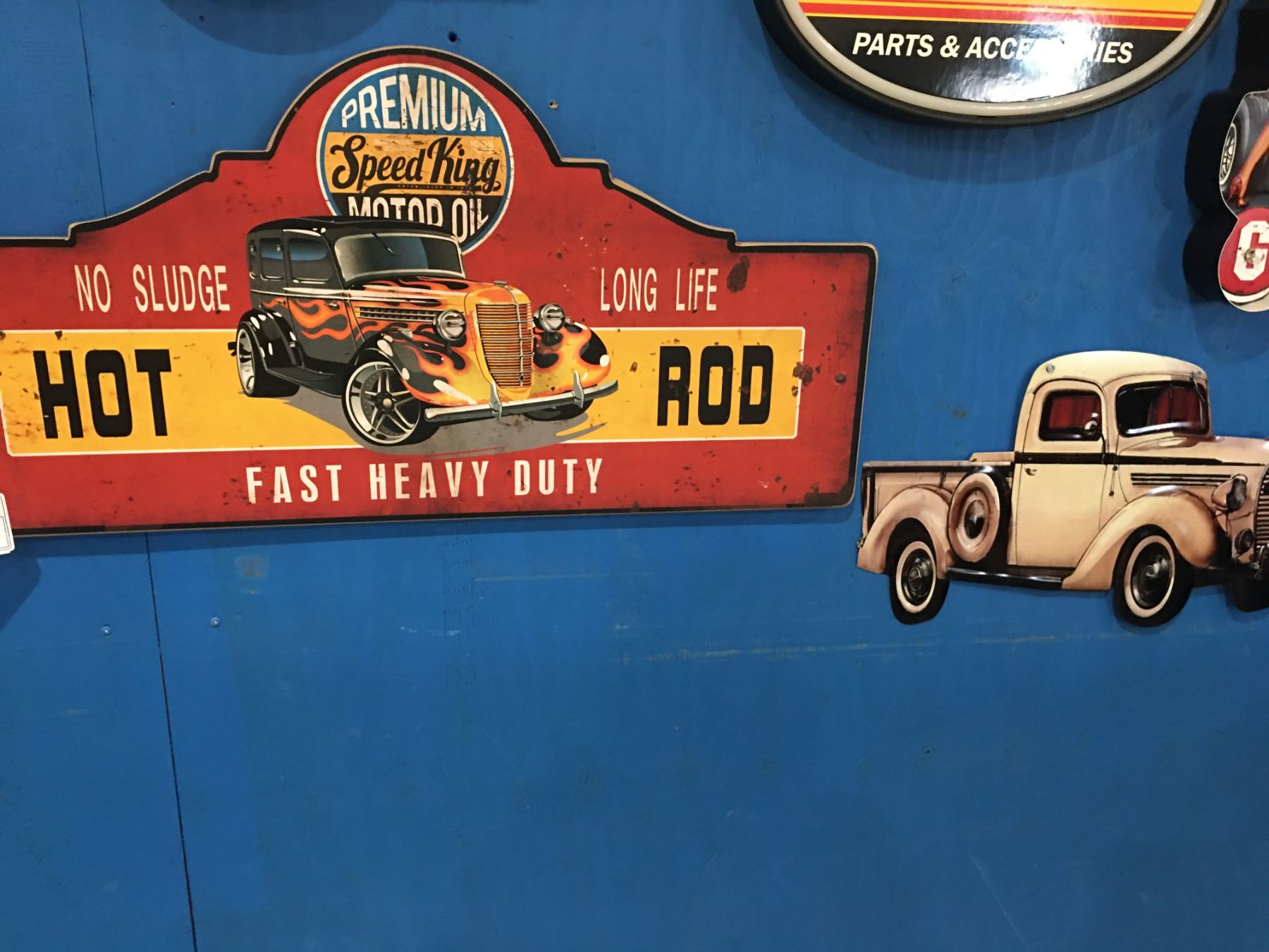 HOT ROD' SIGN APPROX 32" WIDE AND METAL PICKUP SIGN APPROX 19"