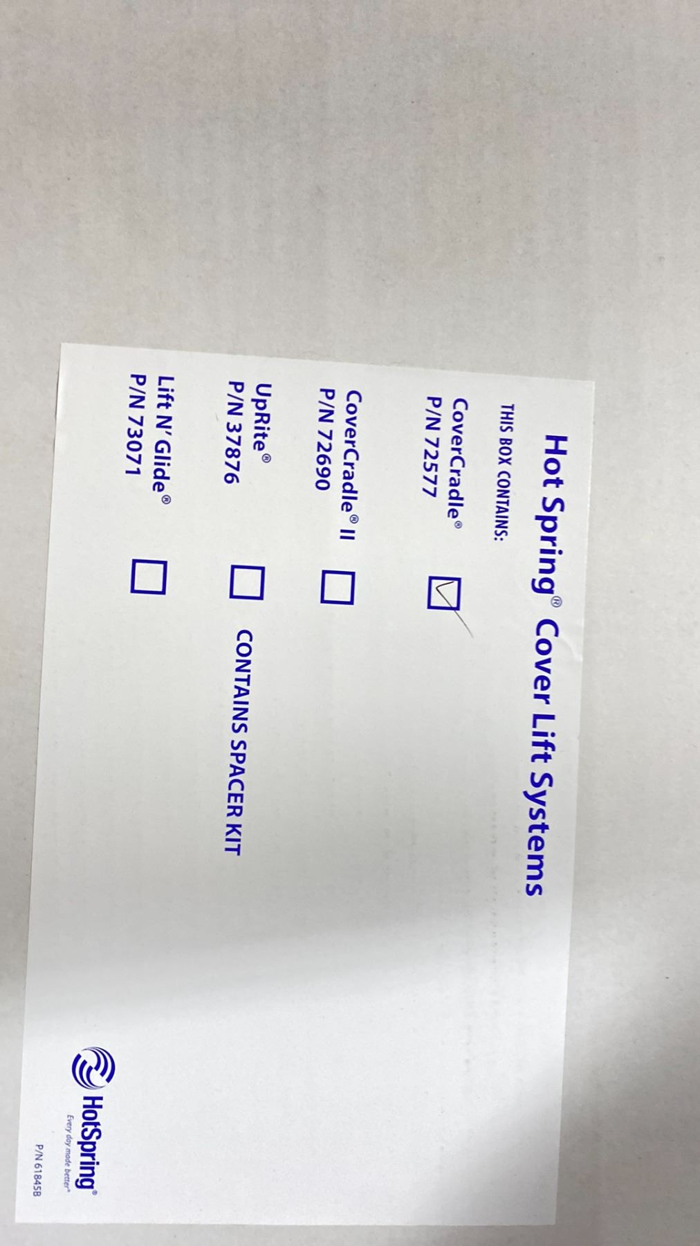 HOT SPRING COVER LIFT SYSTEM MODEL COVER CRADLE P/N 72577