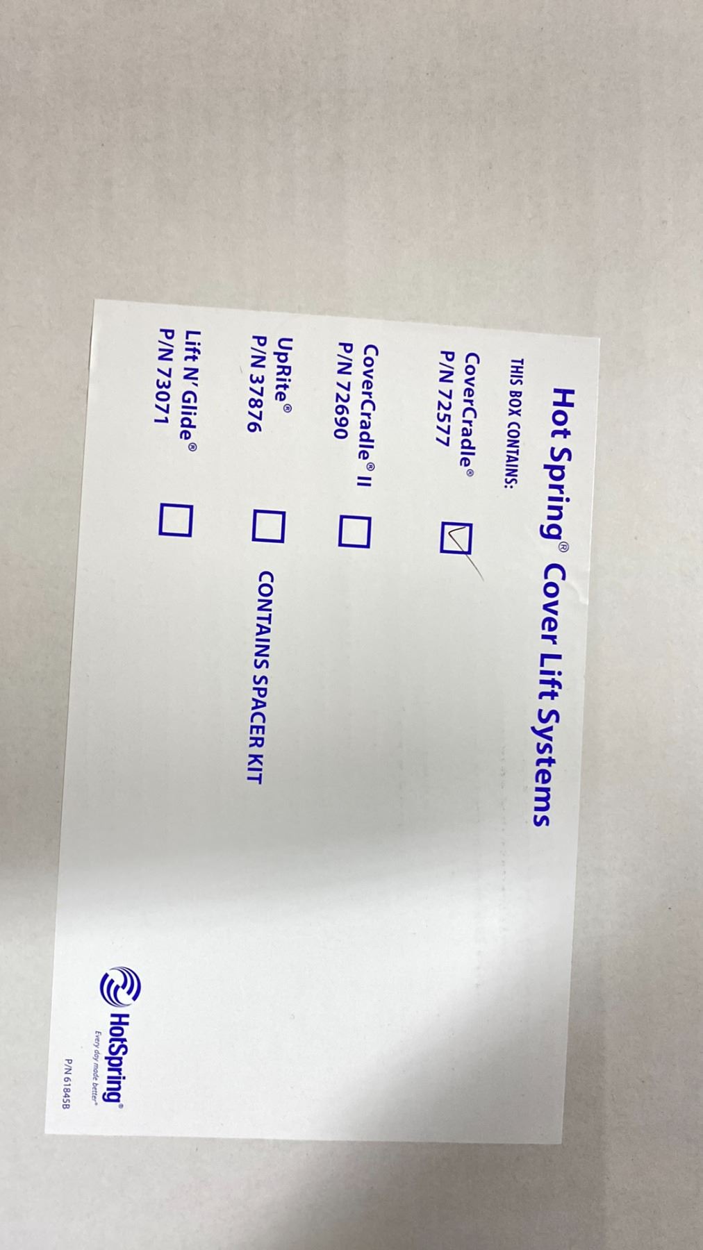 HOT SPRING COVER LIFT SYSTEM MODEL COVER CRADLE P/N 72577