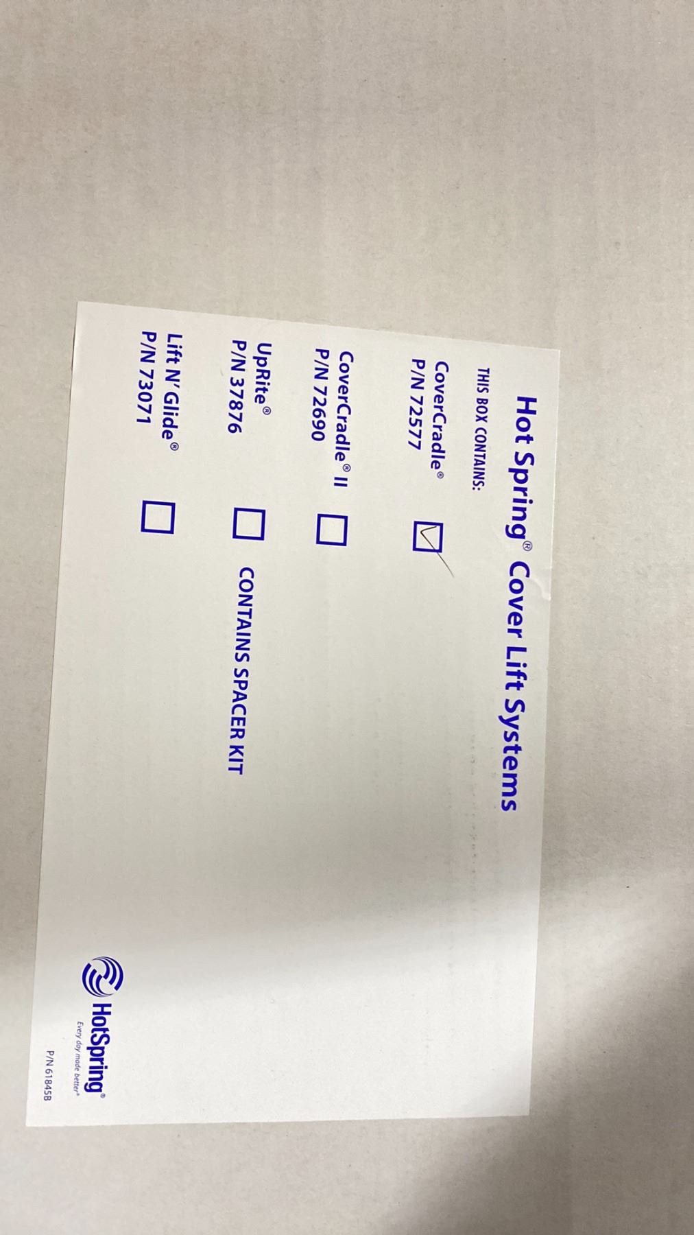 HOT SPRING COVER LIFT SYSTEM MODEL COVER CRADLE P/N 72577