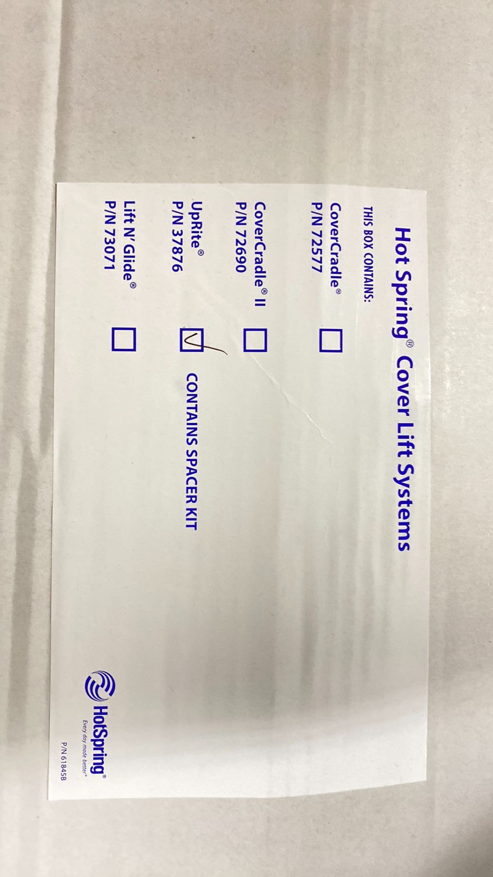 HOT SPRINGCOVER LIFT SYSTEMS MODEL UPRITE P/N 37876