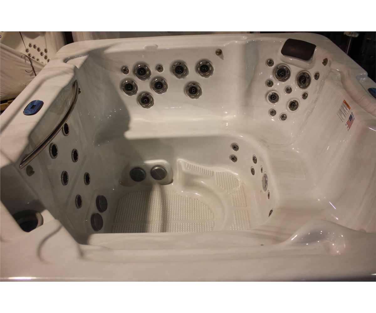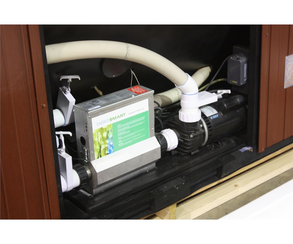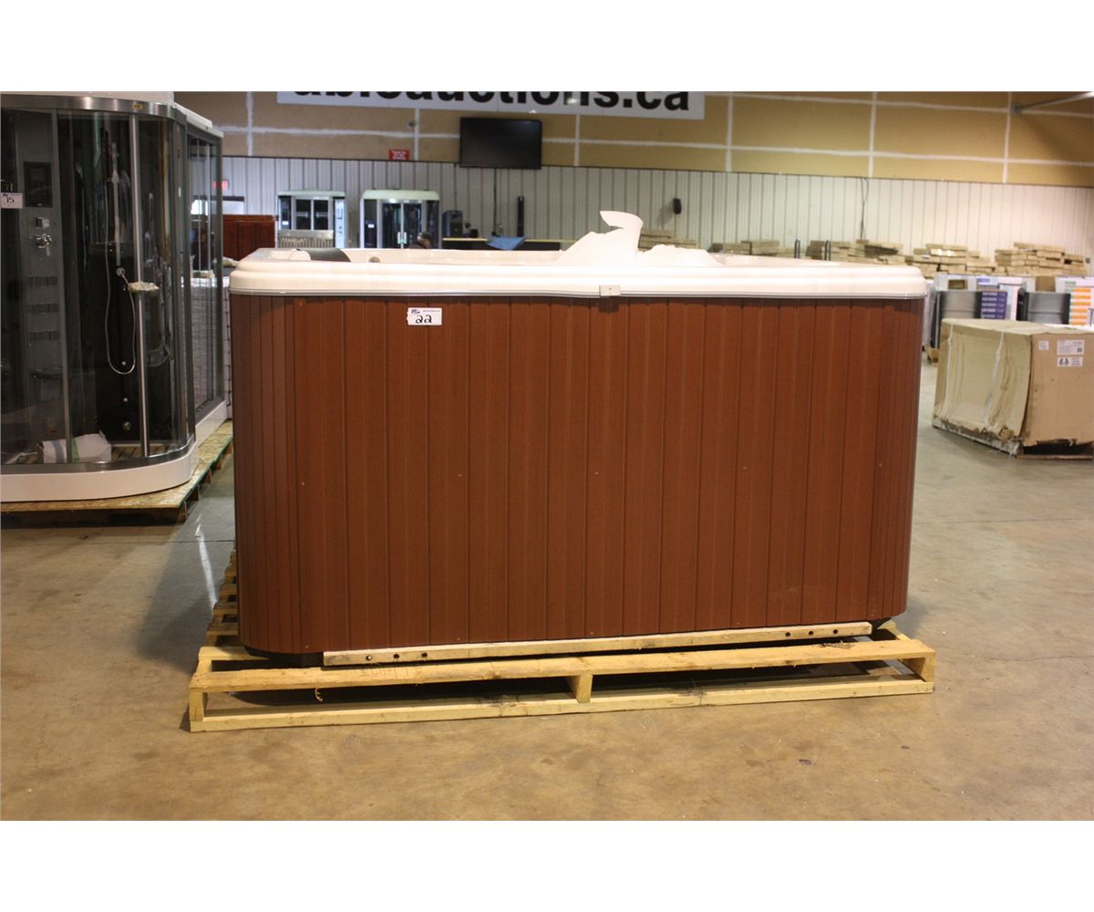 HOT TUB - 54 JETS, STERLING SILVER, MAHOGANY CABINET, OXONATOR, EXCERCISE EQUIPMENT READY, RESISTANCE BAND HOOKS, STRETCH BAR, 3X6HP PUMPS, WORKOUT RESISTANCE JETS, LED SPA LIGHTS, L-S09-MOC854-09S- 005397 RETAIL $18,597.50