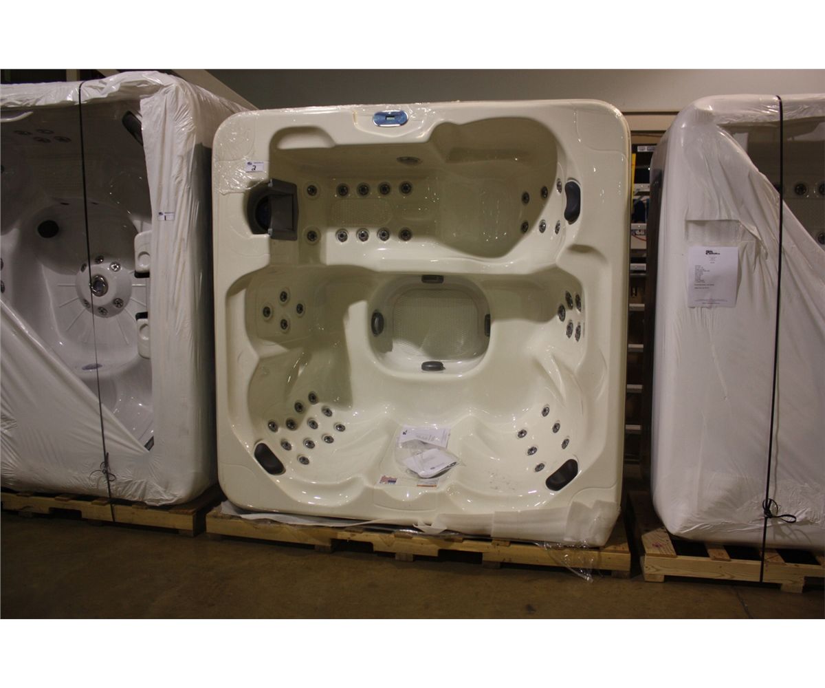 HOT TUB - 6 PERSON, LOUNGE, 45 JETS, LINEN, SMOKE CABINET, OZONATOR, 2X2HP PUMPS M-S09-MOC1545-3-09S-008517 84X84X35 CAB SHORT RETAIL $9,625.00