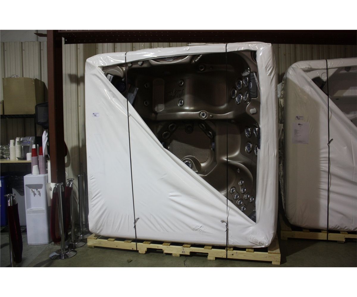 HOT TUB -  65 SS JETS, CINNABAR, SMOKED CABINET, DUAL HYDRO STREAMERS WATERFALL, LED PERIMETER WATERLINE LIGHTING, OZONATOR, IPOD DOCK WITH 4X6" SPEAKERS, 3X5HP PUMPS, 100X100 8'CAB L-S10-DI865L-10S-00 9192 RETAIL $16,462.50