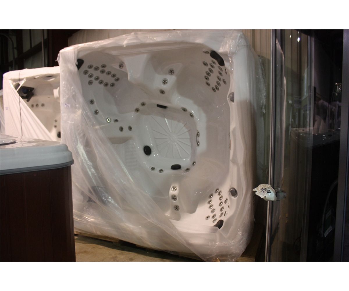 HOT TUB - BENCH SEATING, 90 SS JETS, SNOW WHITE, SMOKECABINET, GATE VALVES, LED JET LIGHT THERMO LAYER CABINET, 3Z5.0HP PUMPS, 3 PILLOWS 100X100 90X90X39.5 CAB L-S11-FA890B-S-11S-000766 RETAIL $10,125.00