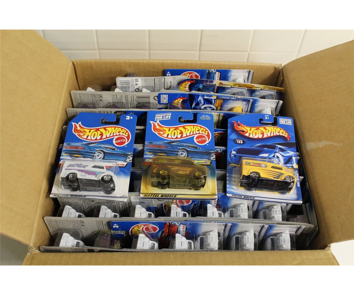 HOT WHEELS FACTORY BOX CONTAINING 59+ MINT ON BOARD MOO MOBILES