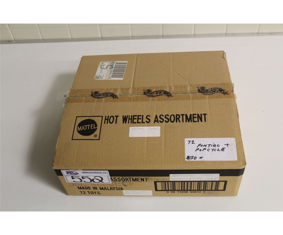 HOT WHEELS FACTORY BOX CONTAINING 70+MINT ON BOARD PONTIAC AND POPCYLCE