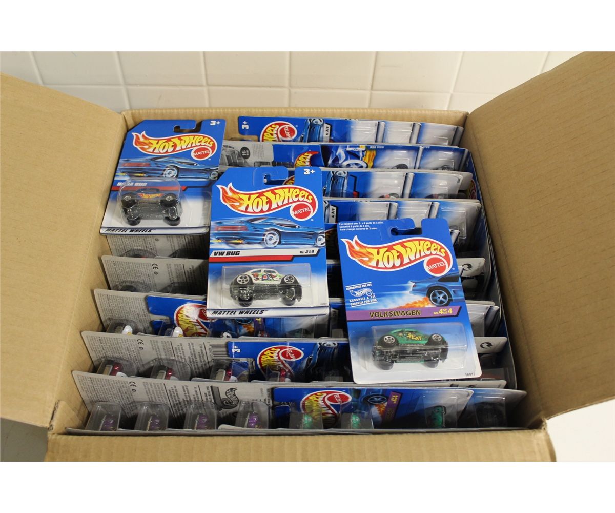 HOT WHEELS FACTORY BOX CONTAINING 75+ MINT ON BOARD VOLKSWAGENS