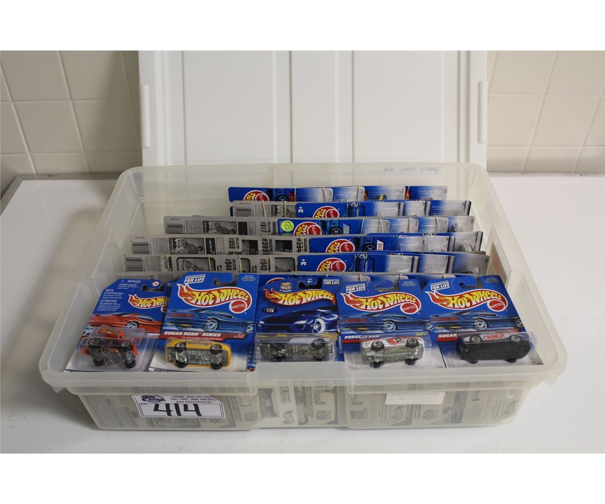 HOT WHEELS RUBBERMAID CONTAINING 100 MINT ON BOARD INCLUDING SOME 4 CAR SETS