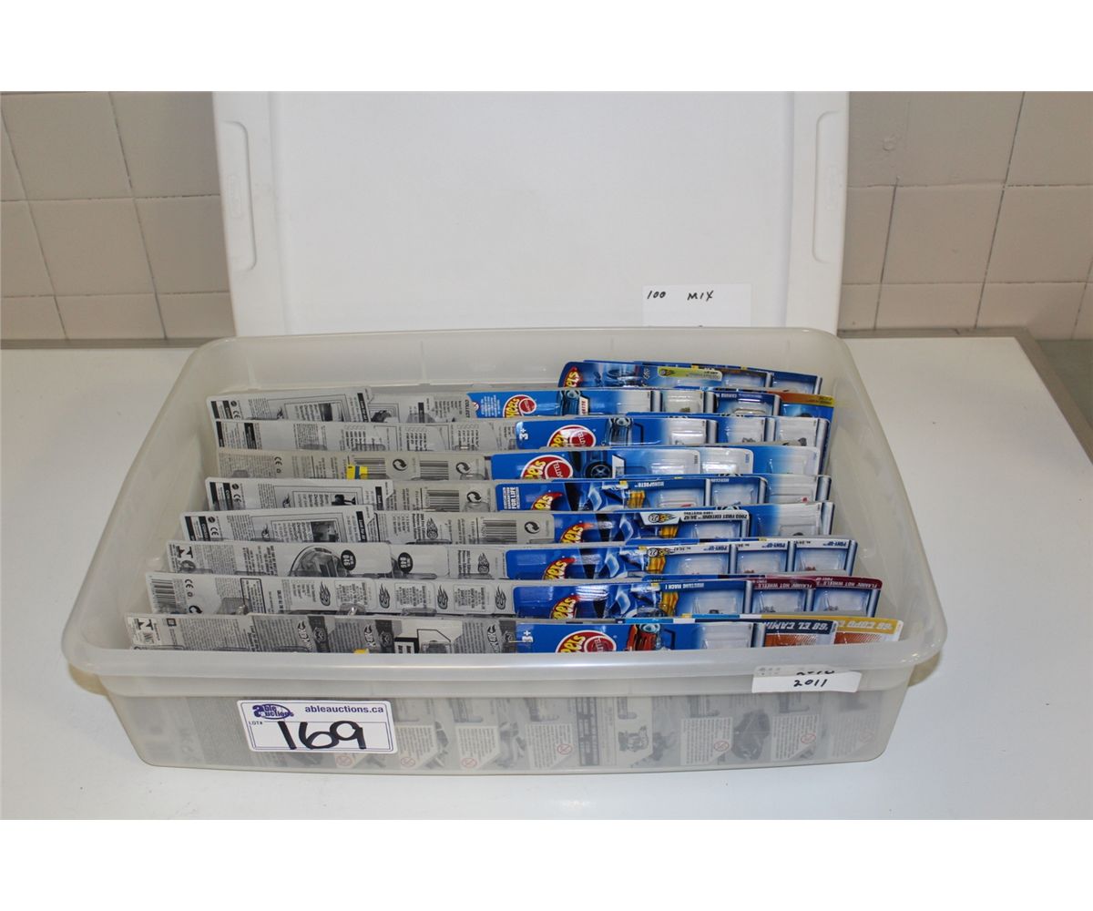 HOT WHEELS RUBBERMAID CONTAINING 100 MIXED, MINT ON BOARD