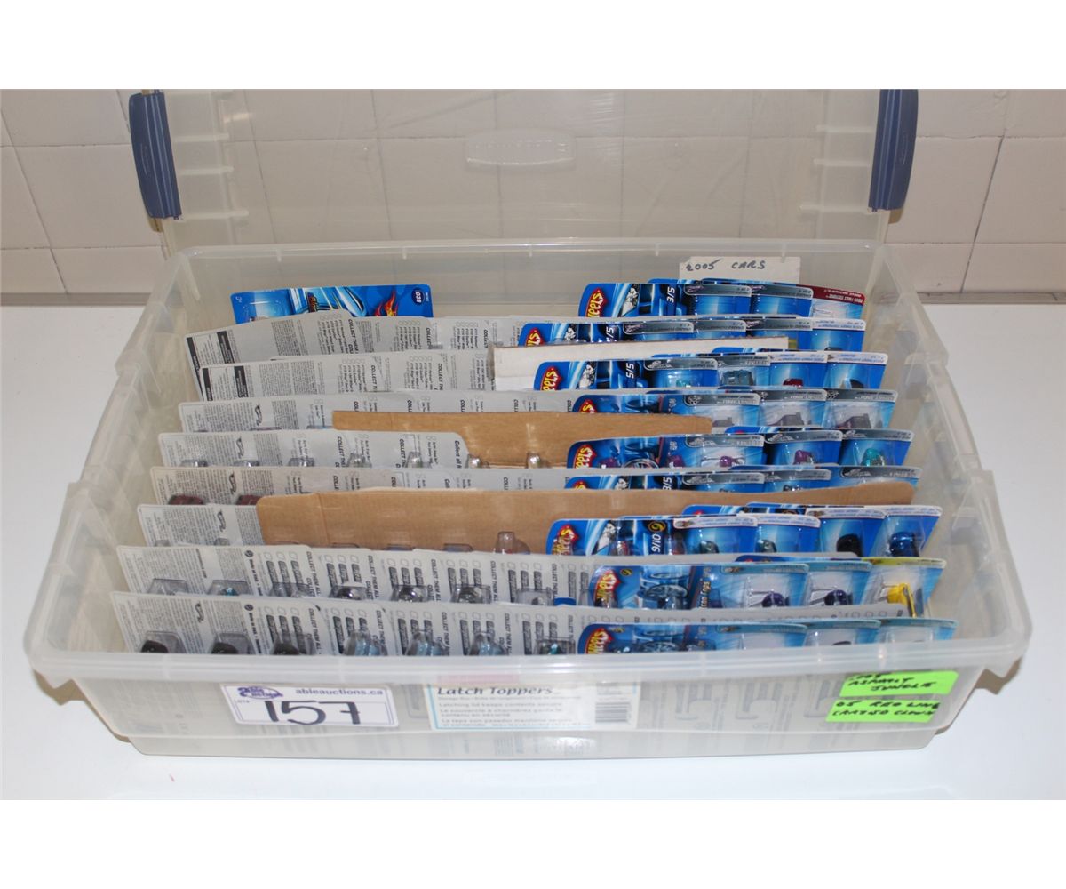 HOT WHEELS RUBBERMAID CONTAINING 111 MINT ON BOARD FROM 2005 INCLUDING ASPHALT JUNGLE, RED LINE CRAZED CLOWN ETC.