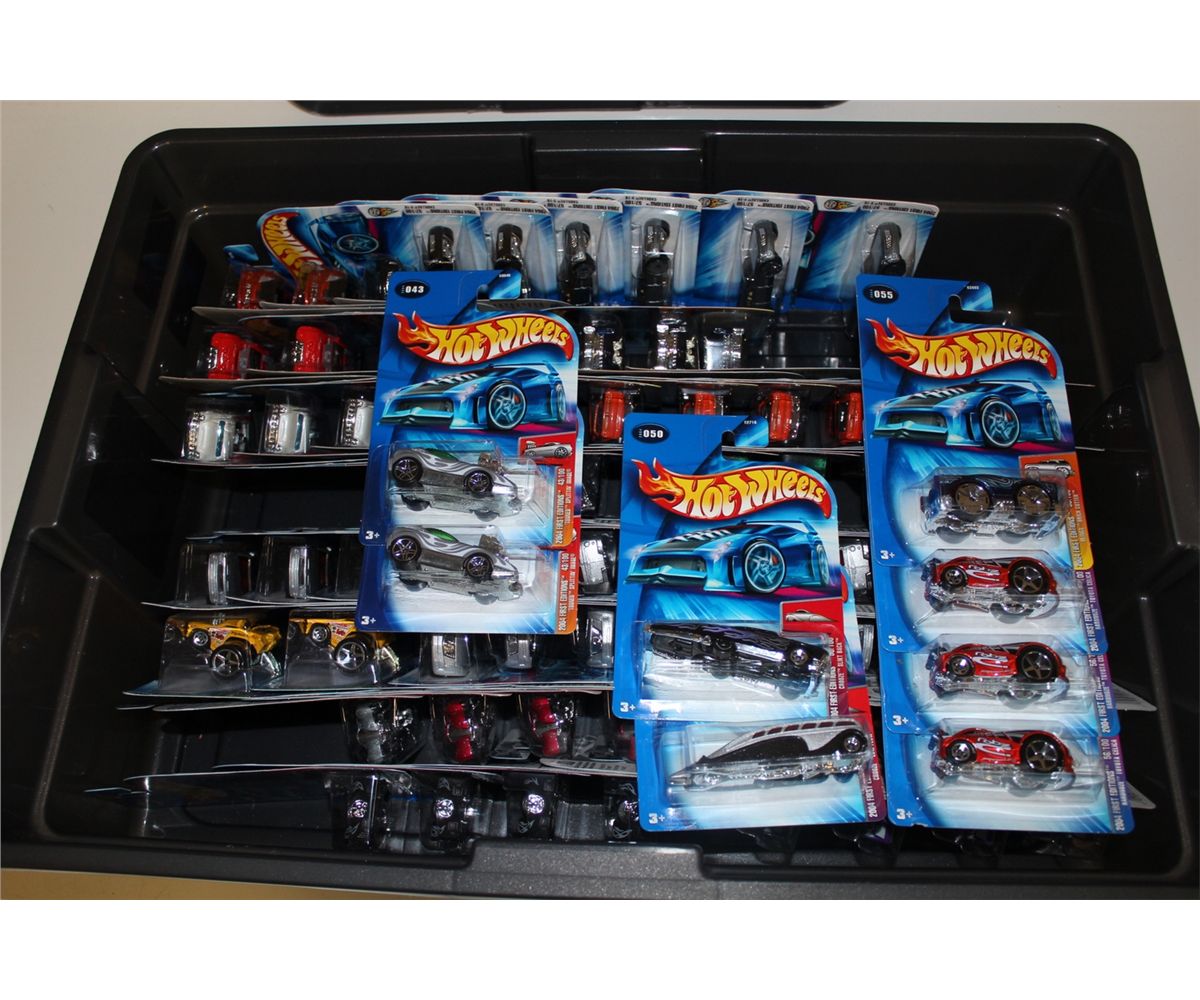 HOT WHEELS RUBBERMAID CONTAINING 70+ MINT ON BOARD MIXED CARS