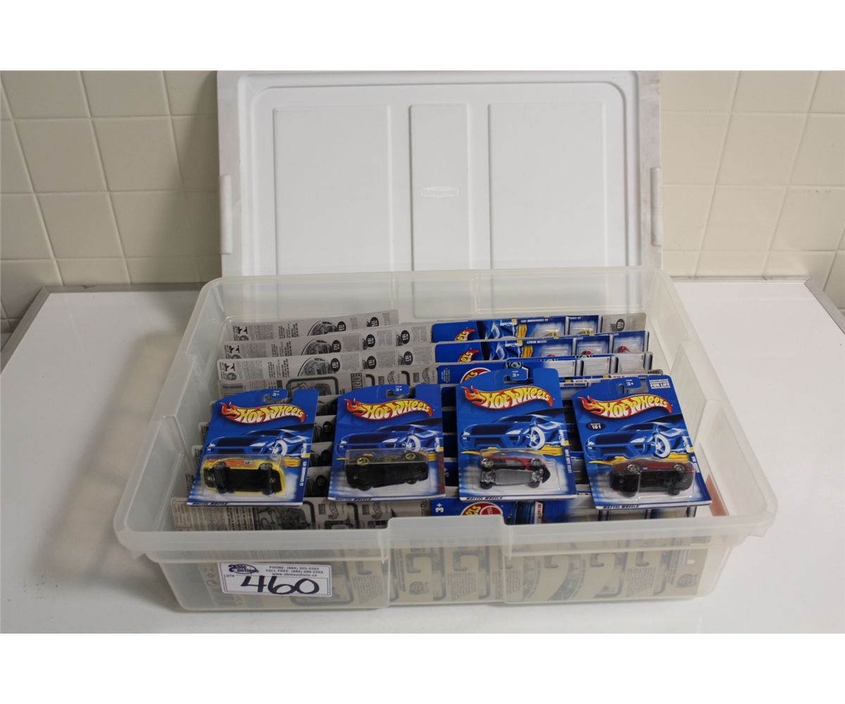 HOT WHEELS RUBBERMAID CONTAINING 80+ MINT ON BOARD ENGLISH MAKES INCLUDING JAGUAR, MINI, ESCORT ETC.