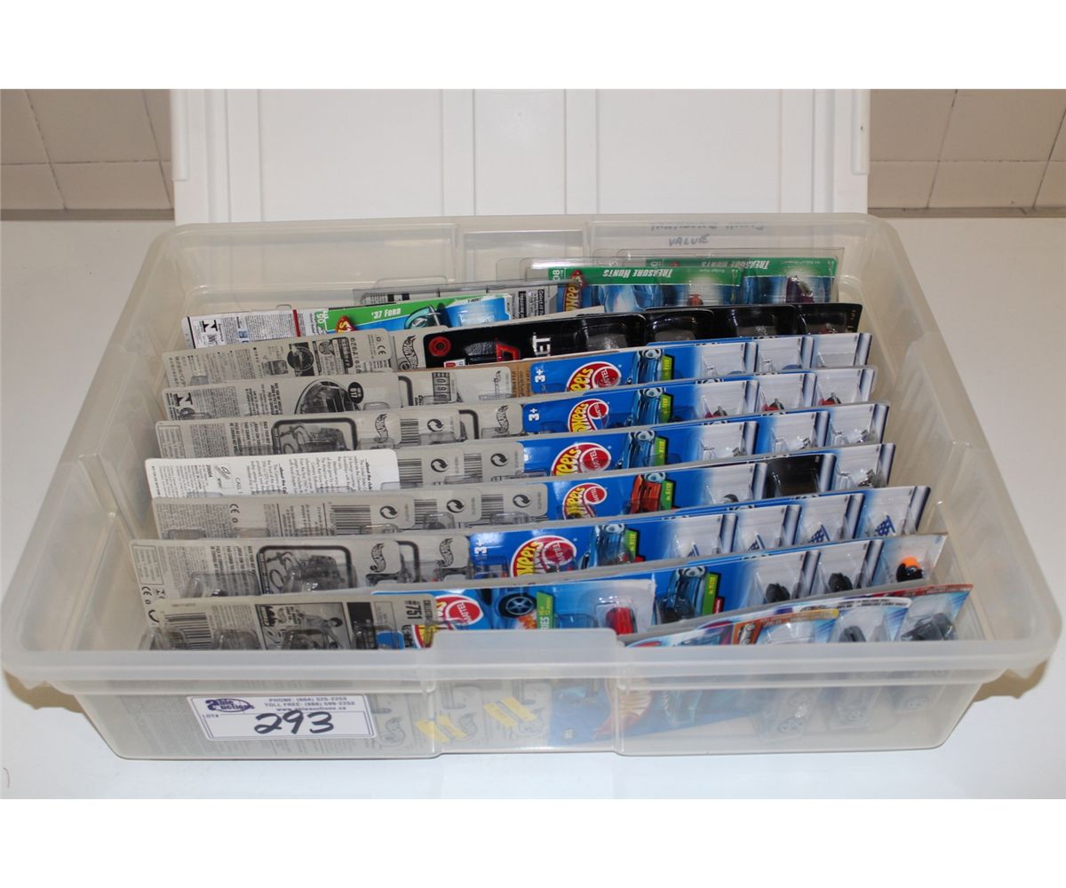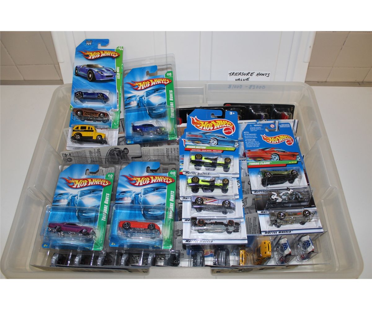 HOT WHEELS RUBBERMAID CONTAINING 80+ MIXED INCLUDING TREASURE HUNTS, MINT ON BOARD