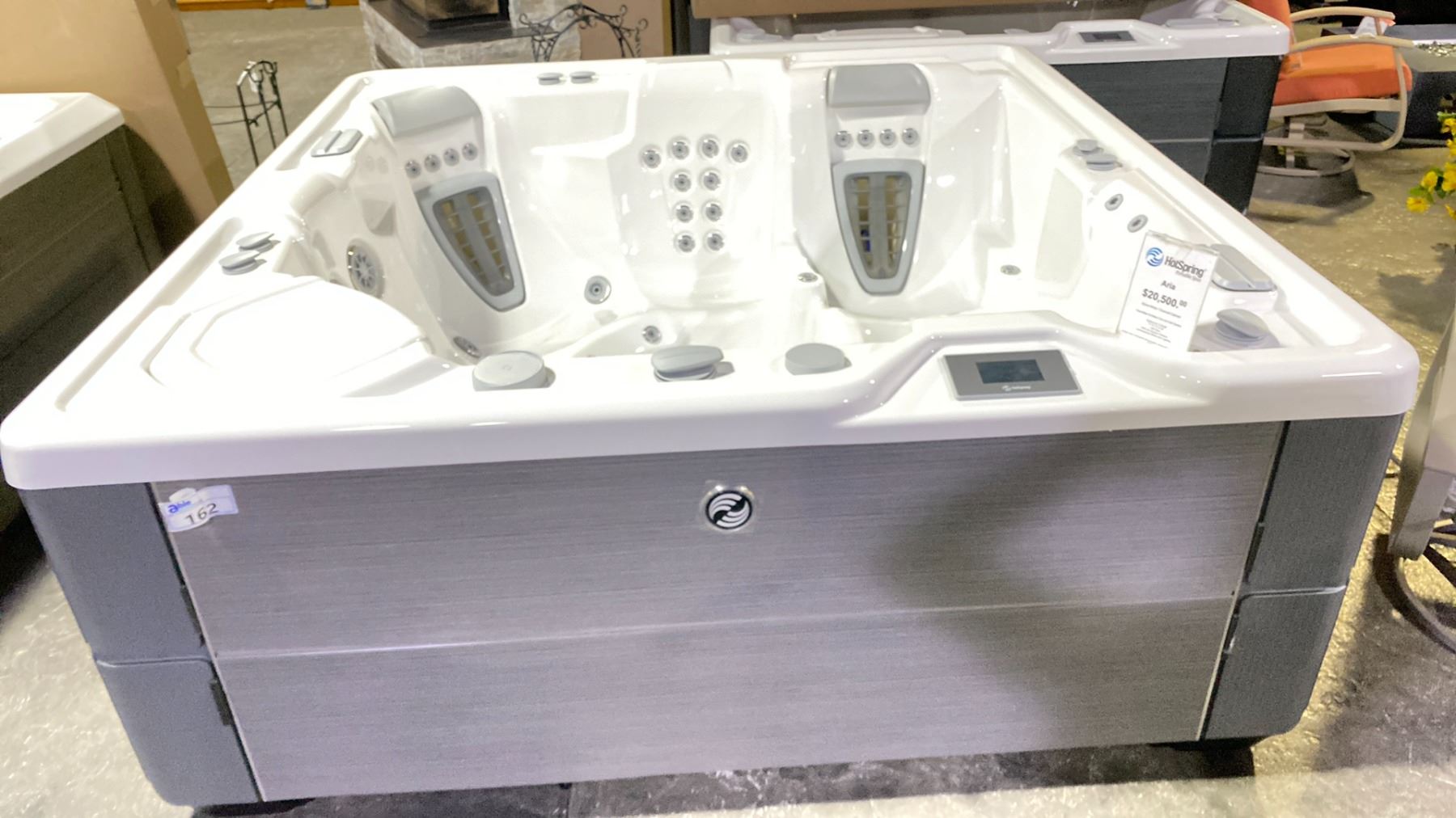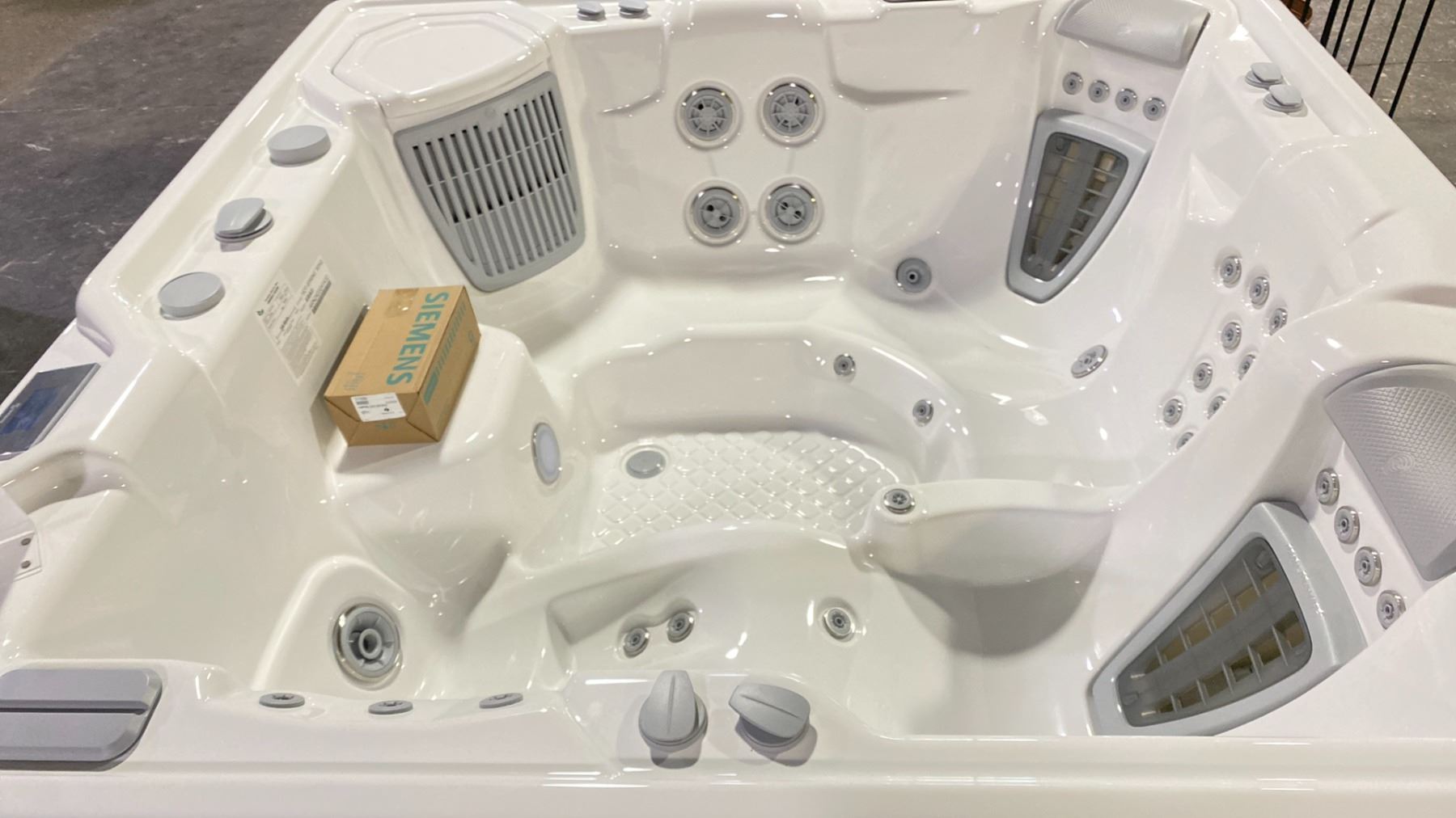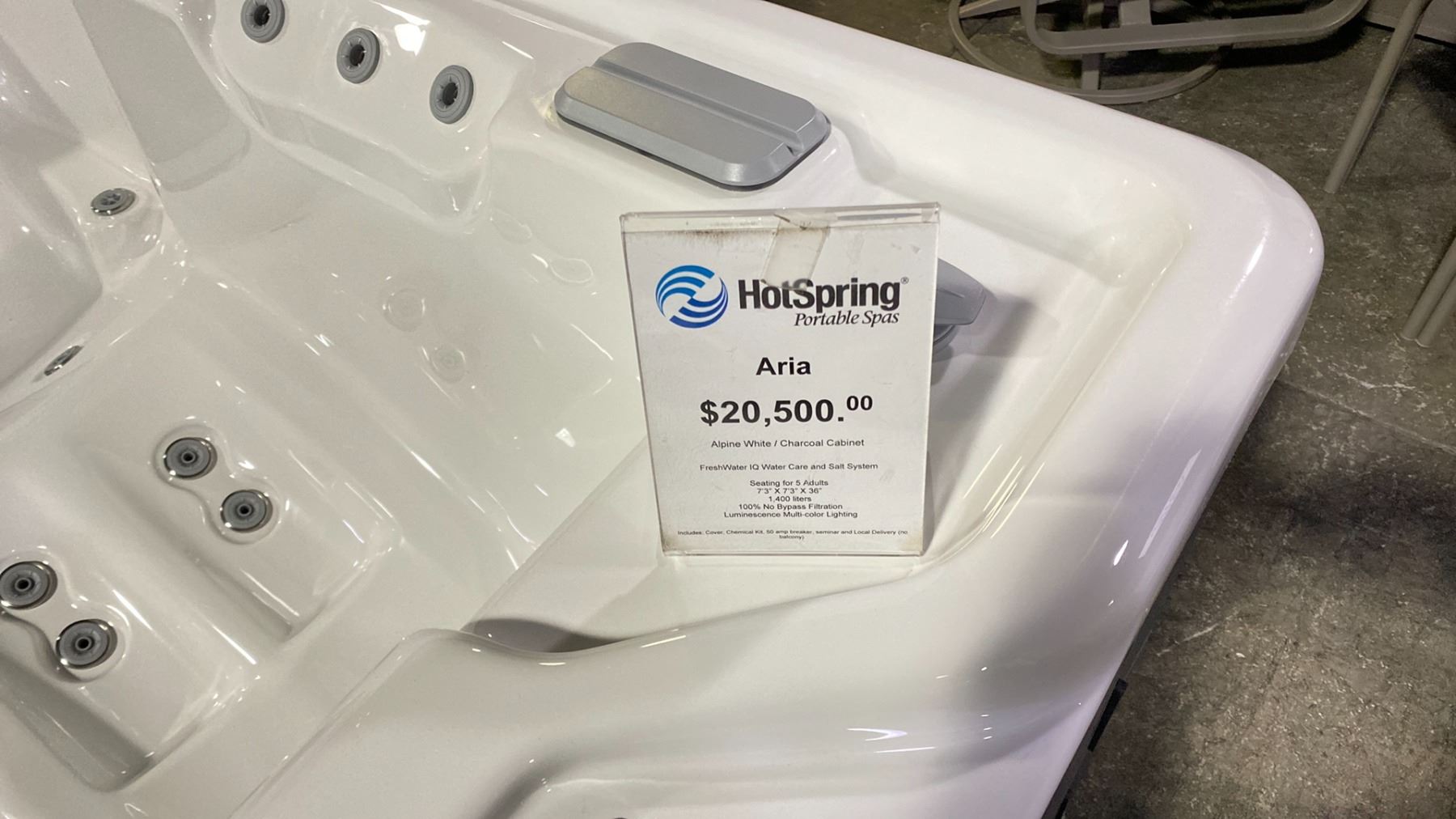 HOTSPRING PORTABLE SPA ARIA HOT TUB. ALPINE WHITE/CHARCOAL CABINET. FRESHWATER IQ WATER CARE AND SALT SYSTEM. SEATING FOR 5 ADULTS. 7'3"X7'3"X36". 1,400 LITERS, 100% NO BYPASS FILTRATION, LUMINESCENCE MULTI-COLOR LIGHTING. INCLUDES COVER, 50 AMP BREAKER RETAILS $20,500