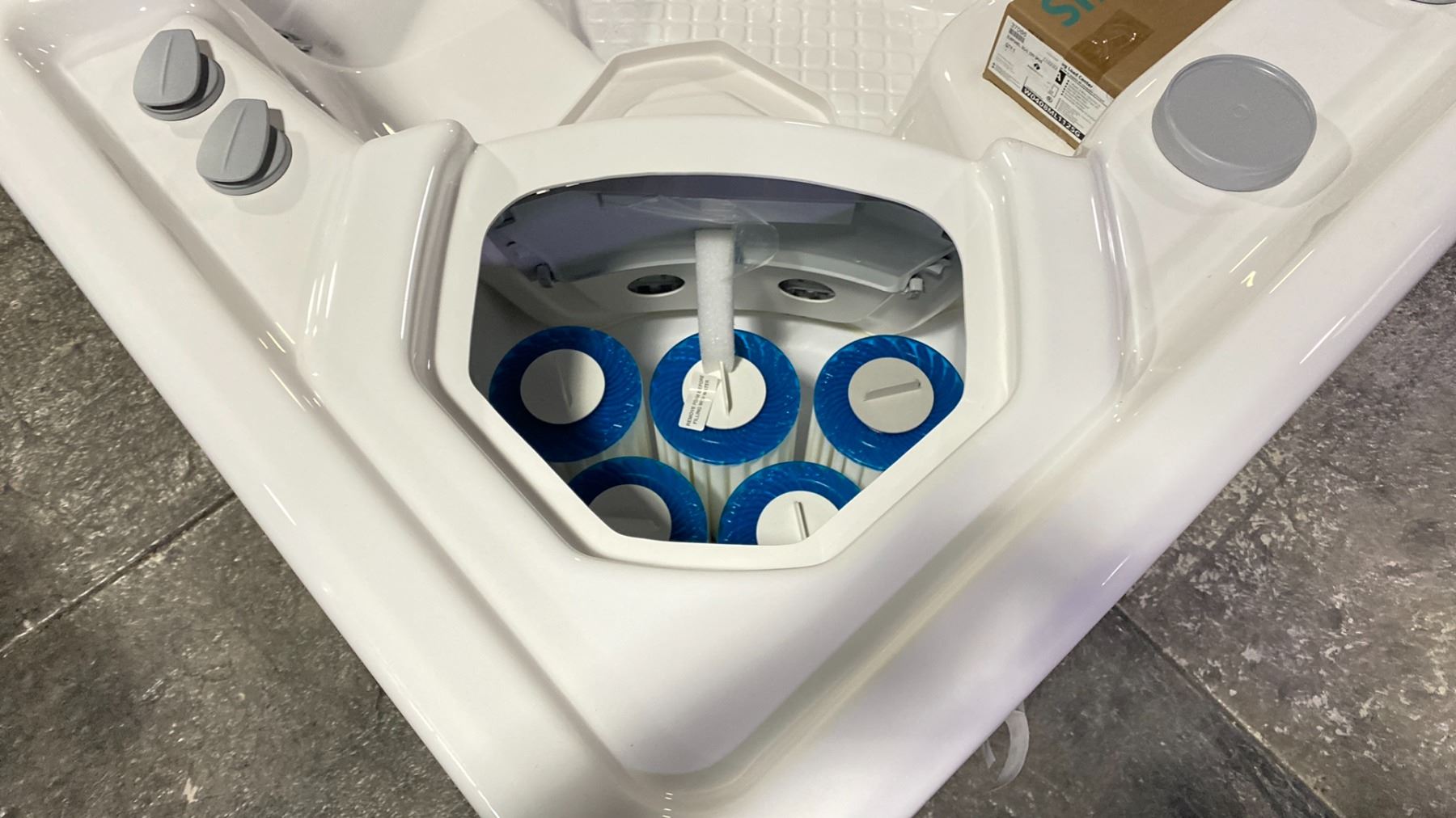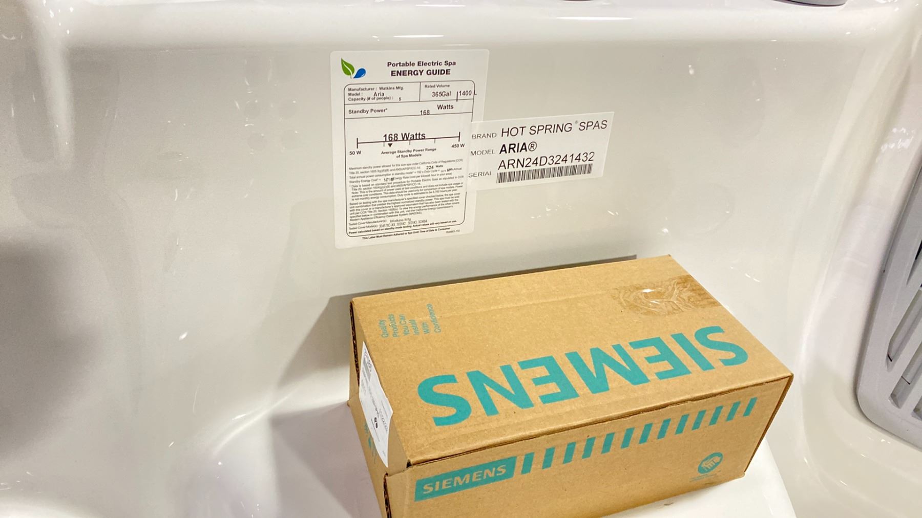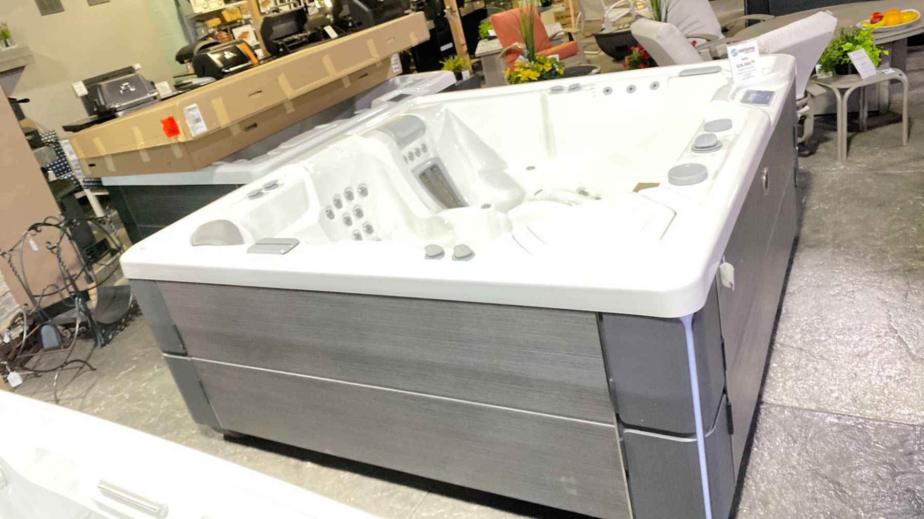 HOTSPRING PORTABLE SPA ARIA HOT TUB. ALPINE WHITE/CHARCOAL CABINET. FRESHWATER IQ WATER CARE AND SALT SYSTEM. SEATING FOR 5 ADULTS. 7'3"X7'3"X36". 1,400 LITERS, 100% NO BYPASS FILTRATION, LUMINESCENCE MULTI-COLOR LIGHTING. INCLUDES COVER, 50 AMP BREAKER RETAILS $20,500