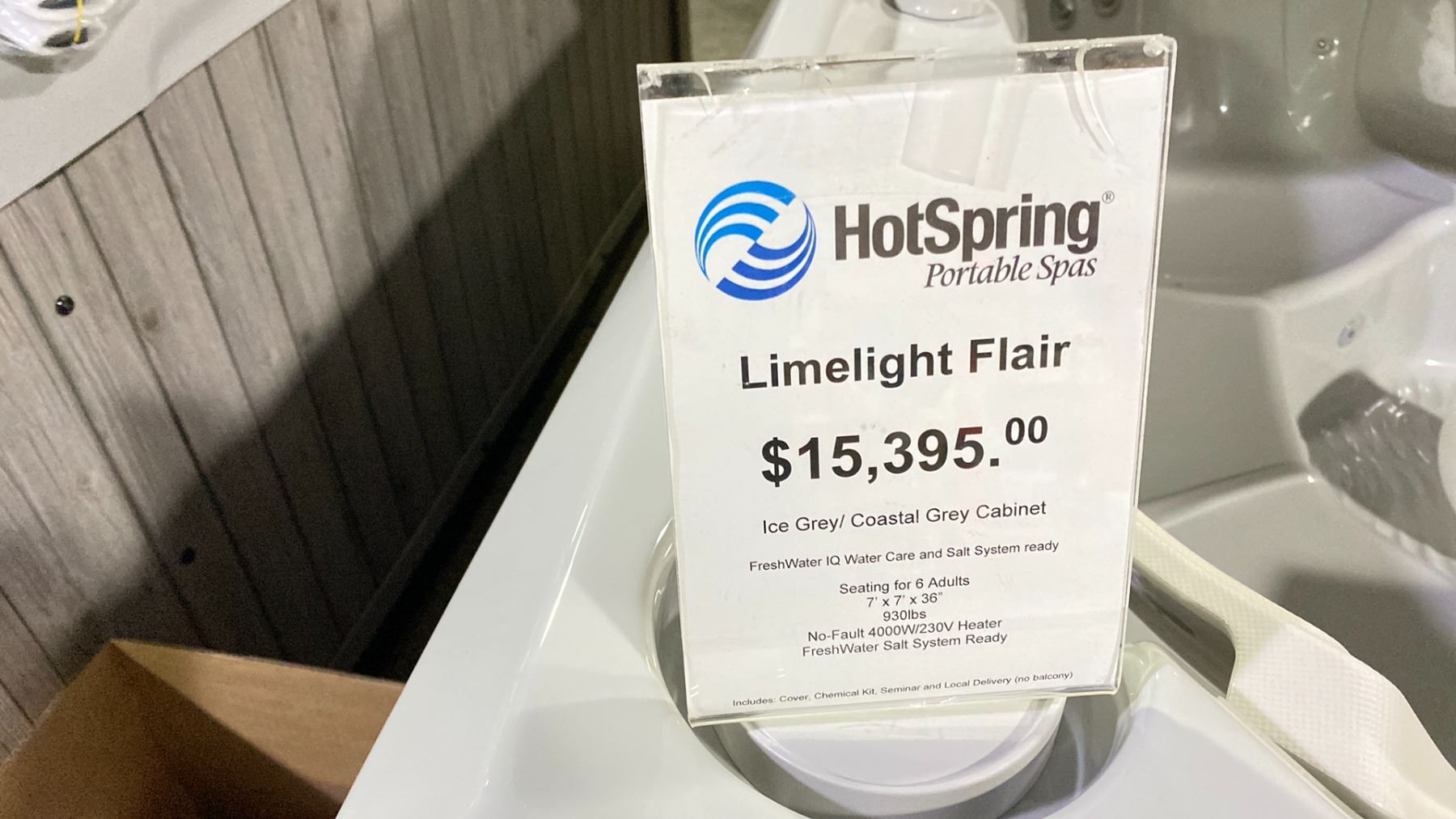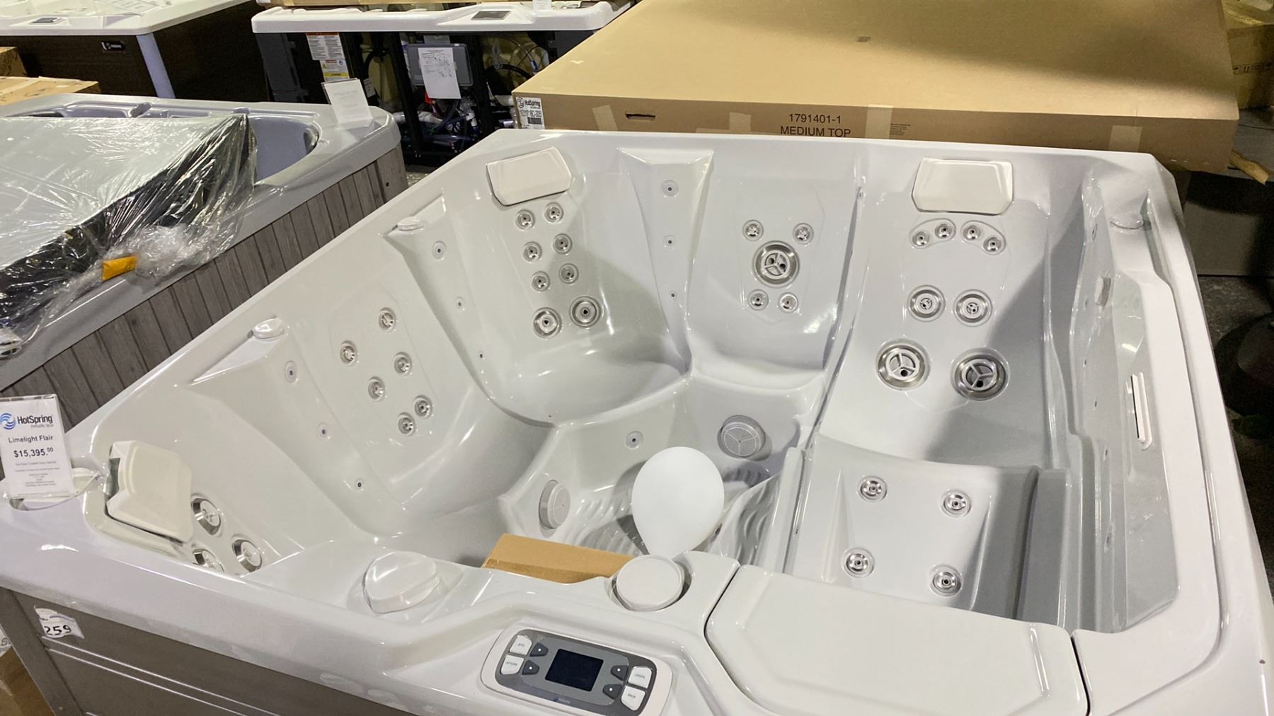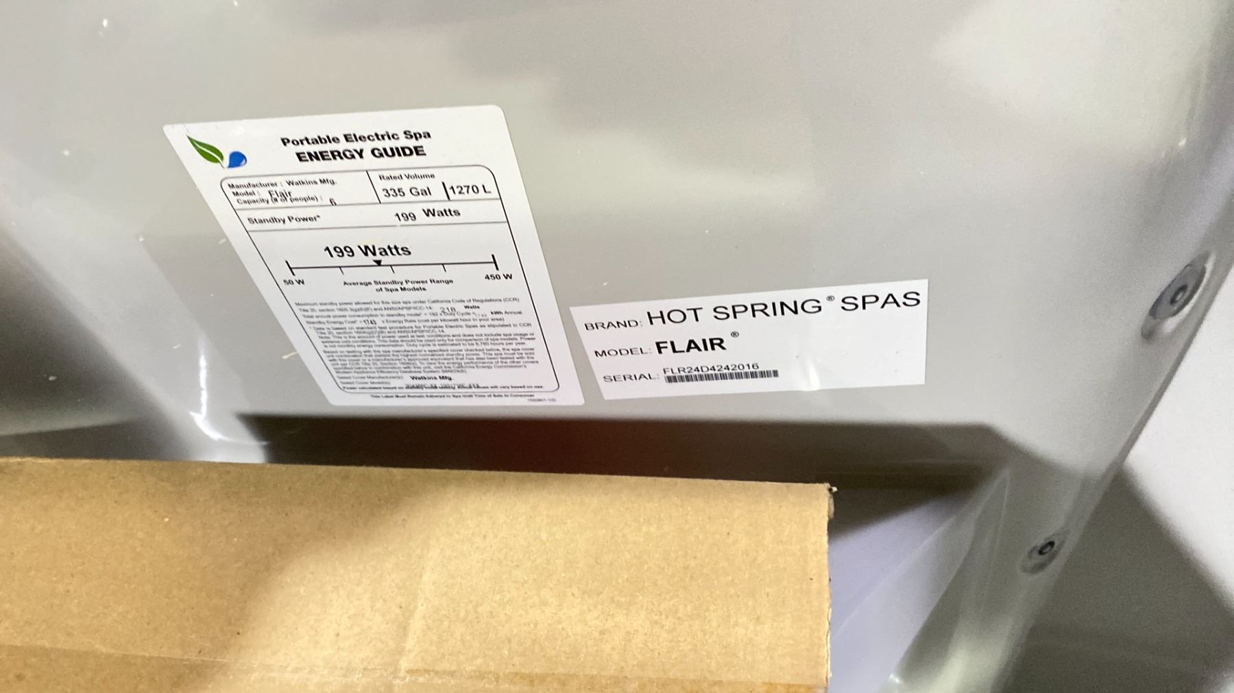 HOTSPRING PORTABLE SPAS LIMELIGHT FLAIR. ICE GREY/COASTAL CREY CABINET. FRESHWATER IQ WATER CARE AND SALT SYSTEM READY, SEATING FOR 6 ADULTS, 7X7'X36", 930 LBS, NO-FAULT 4000W/230V HEATER. INC COVER
