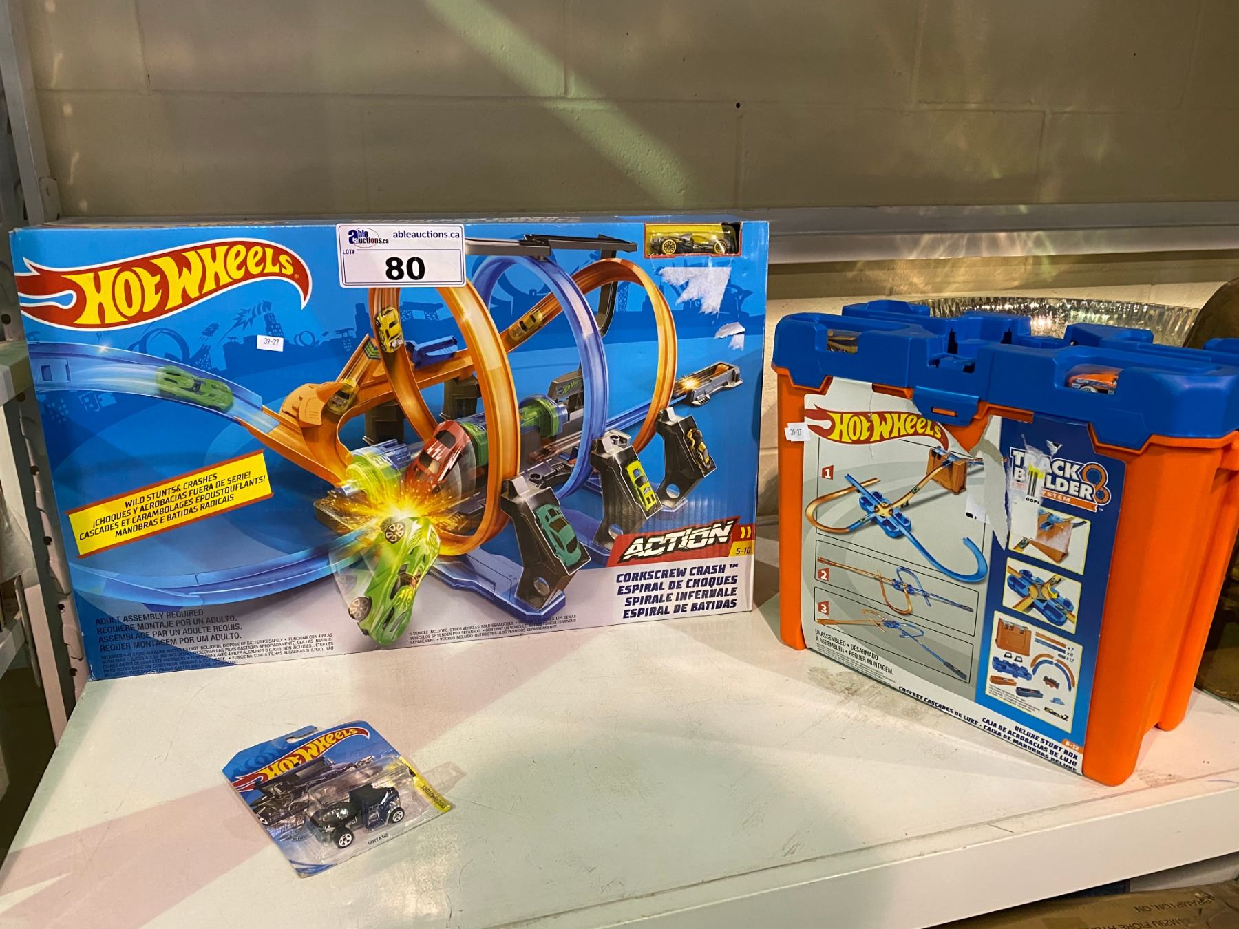 HOTWHEELS ACTION CORKSCREW CRASH, EXPERIMOTORS CAR, & TRACK BUILDER SYSTEM