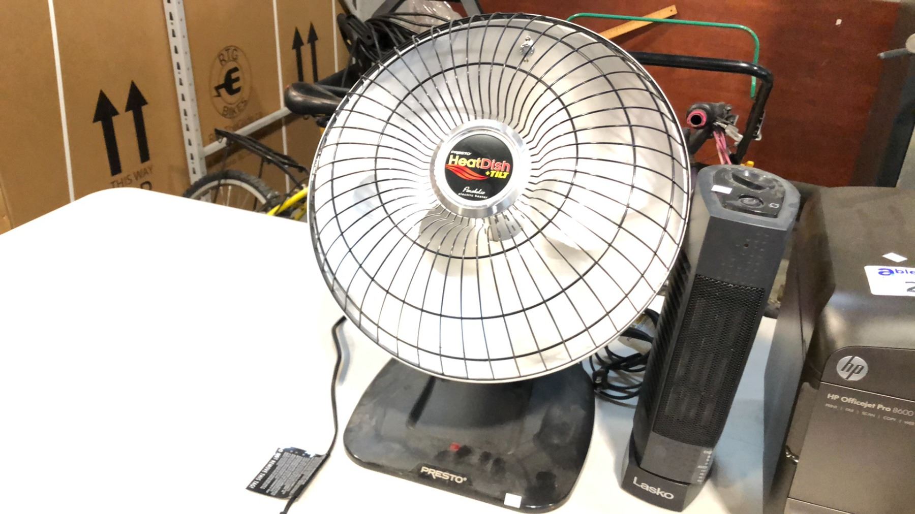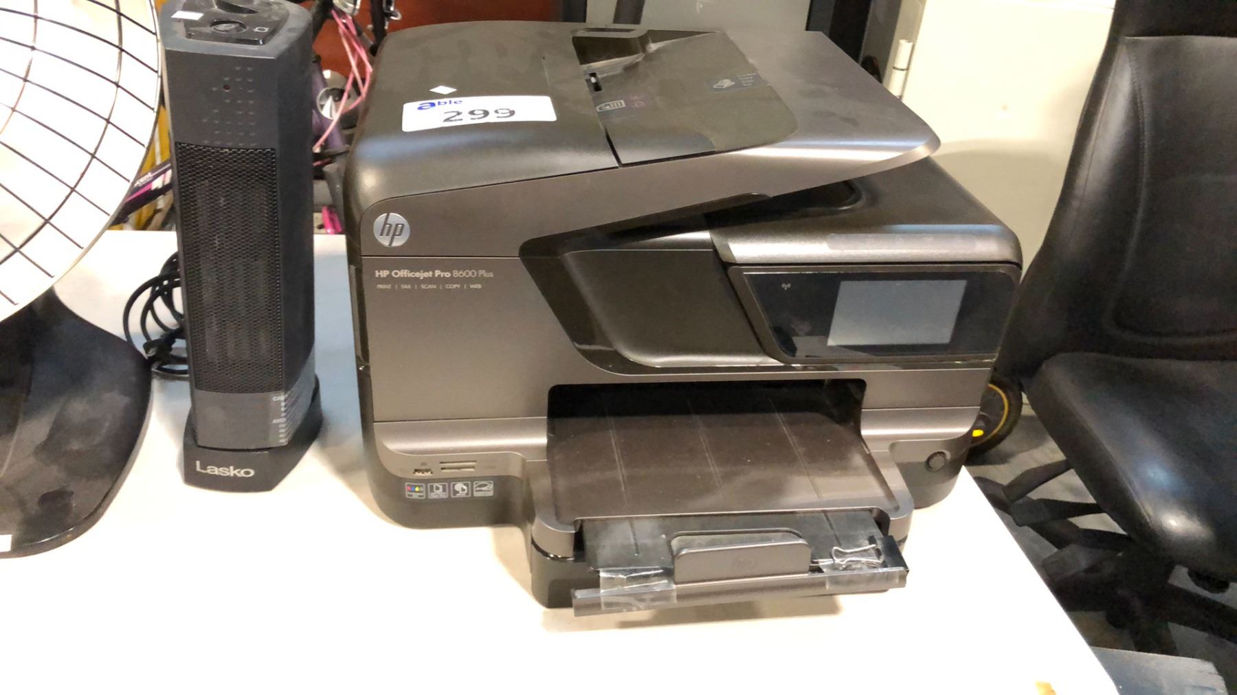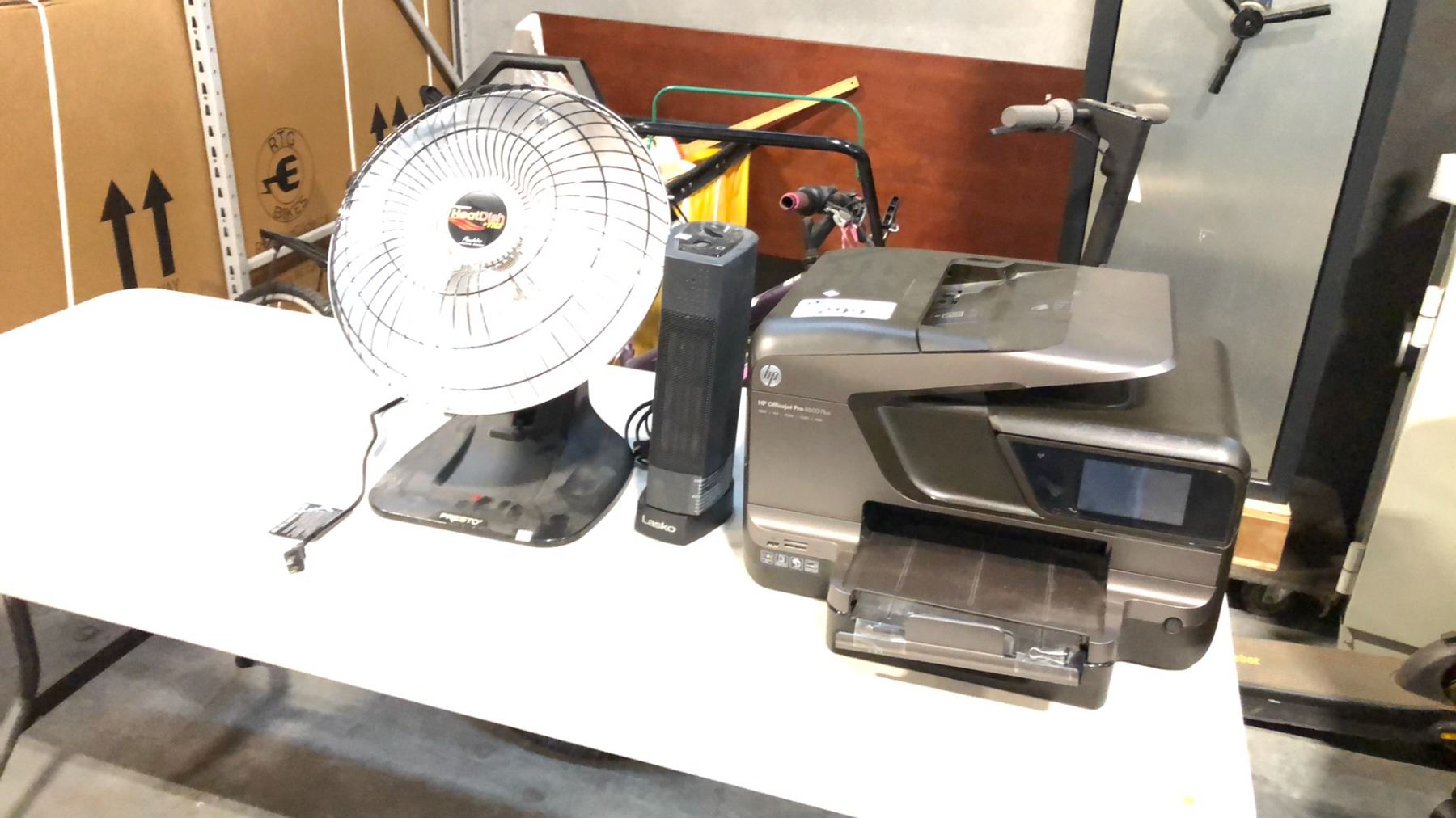 HP OFFICEJET PRO 8600 PLUS MULTIFUNCTION COLOR PRINTER, A PRESTO ELECTRIC HEAT DISH AND A LASKO ELECTRIC MINI FAN/HEATER