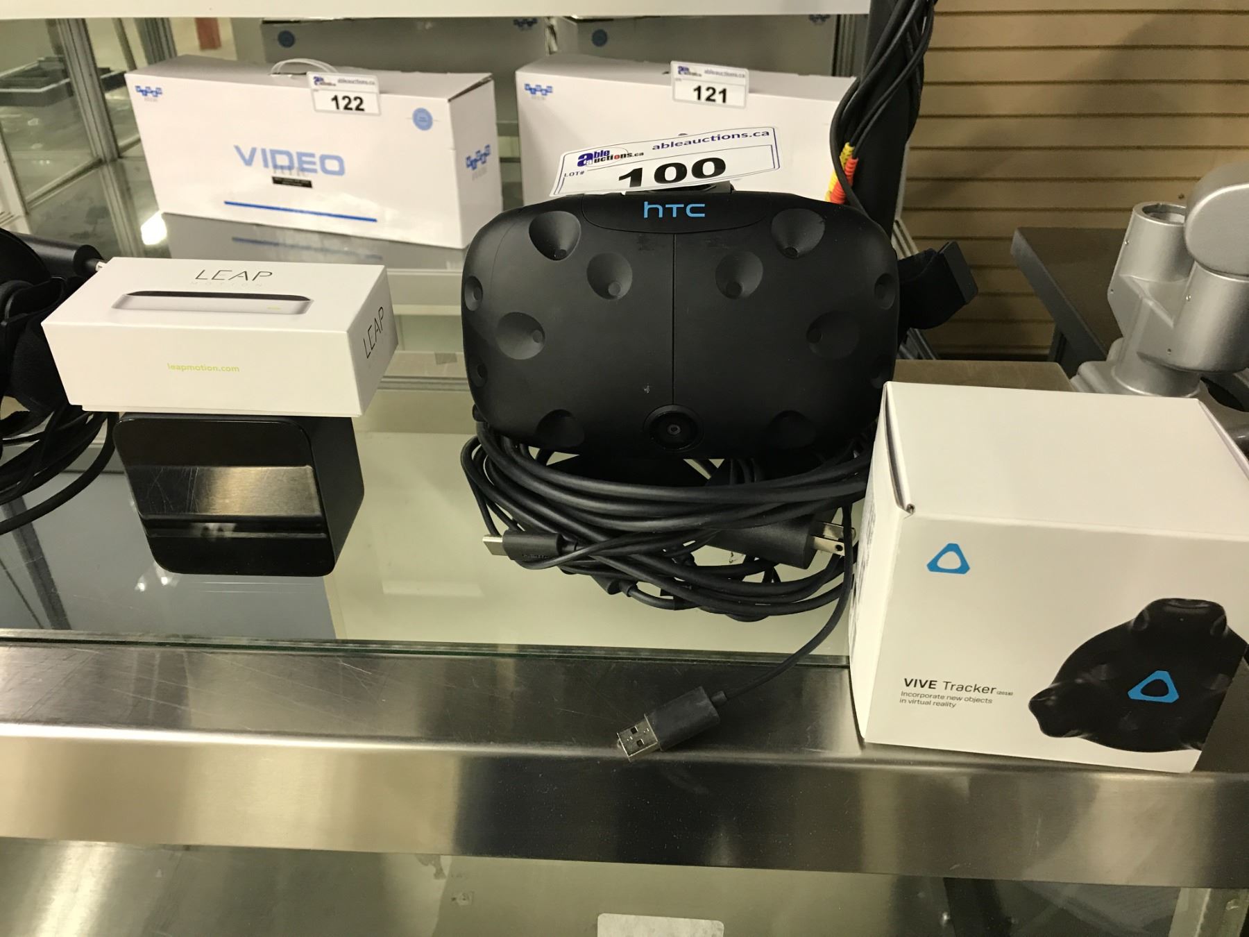 HTC VIVE VR HEADSET WITH RECEIVER, LEAP MOTION CONTROLLER AND VIVE TRACKER