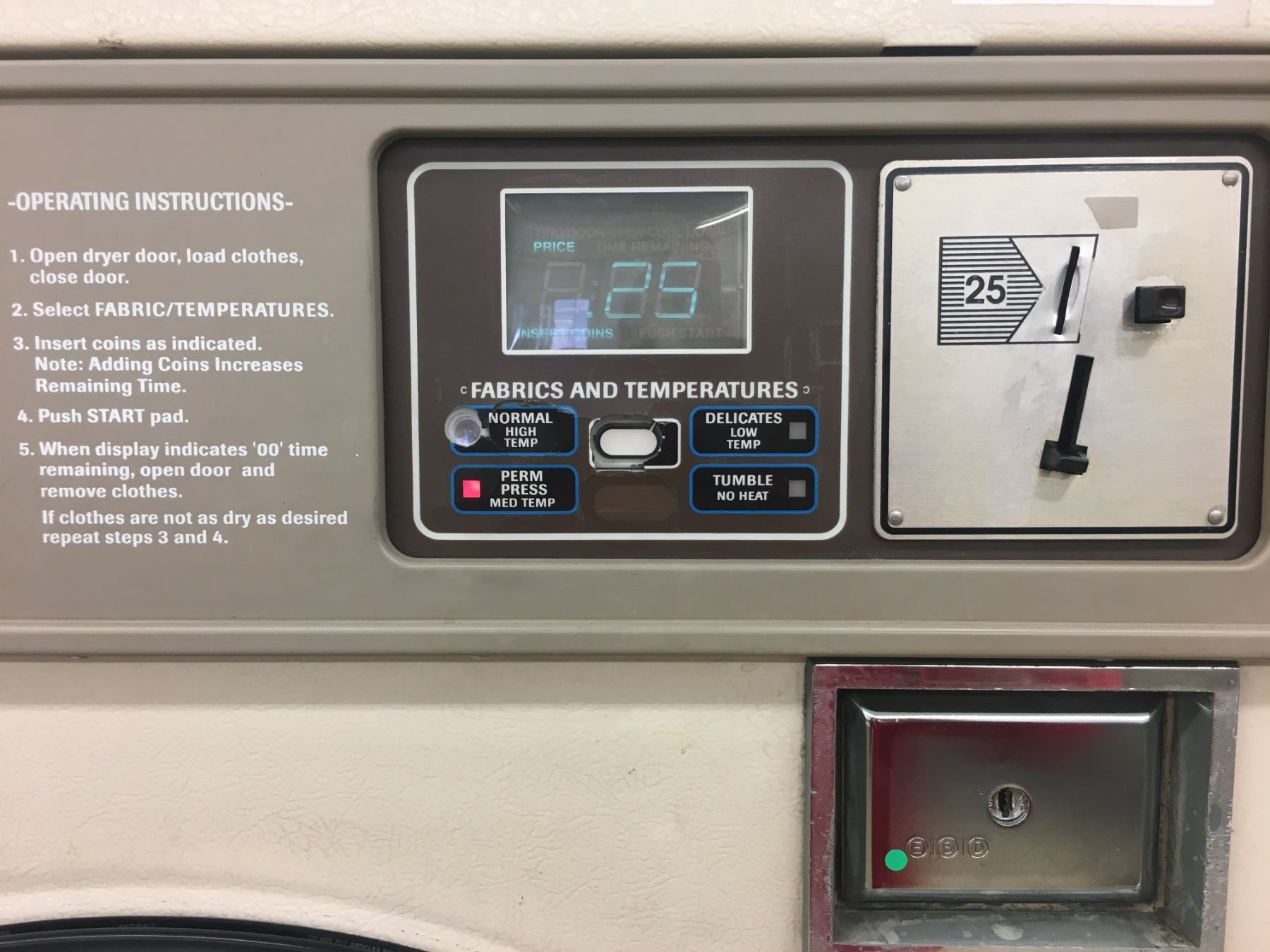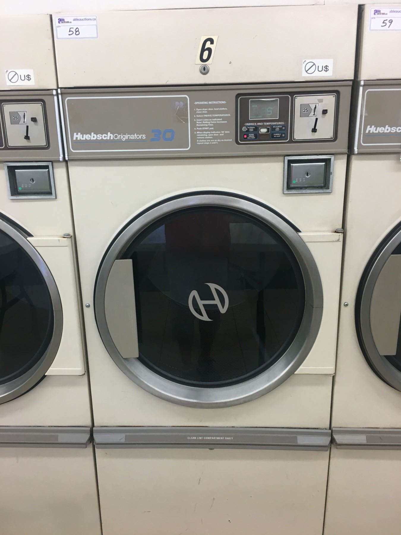 HUEBSCH ORIGINATORS 30 COMMERCIAL COIN OPERATED DRYER #6 (LIGHT BEIGE FRONT) ***REMOVAL & PROFESSIONAL DIS-CONNECTION IS THE RESPONSIBILITY OF BUYER***