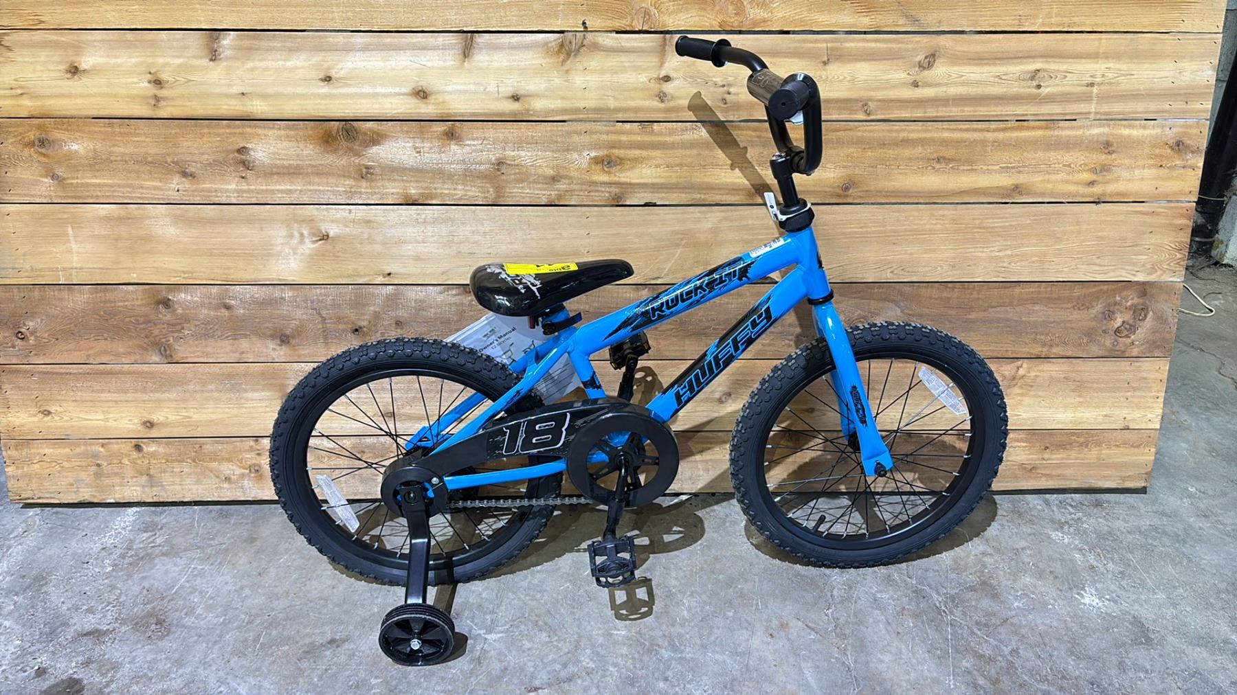 HUFFY BLUE/BLACK CHILDRENS BIKE WITH TRAINING WHEELS
