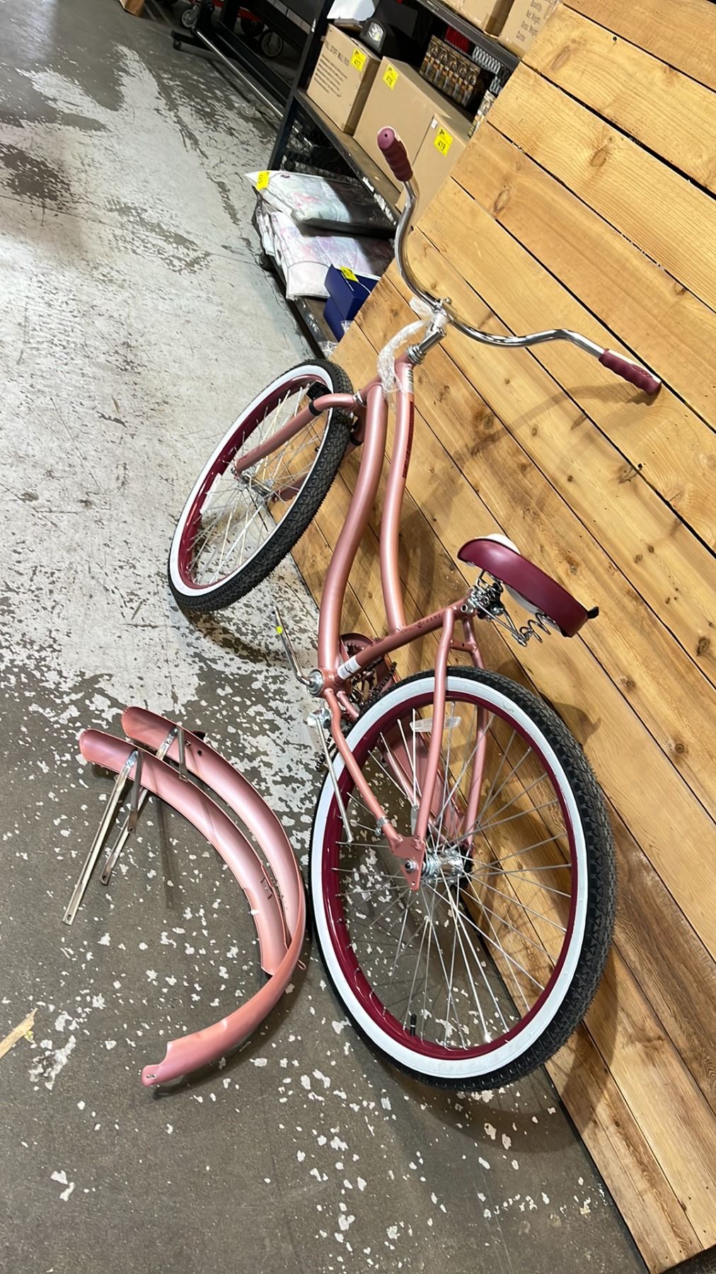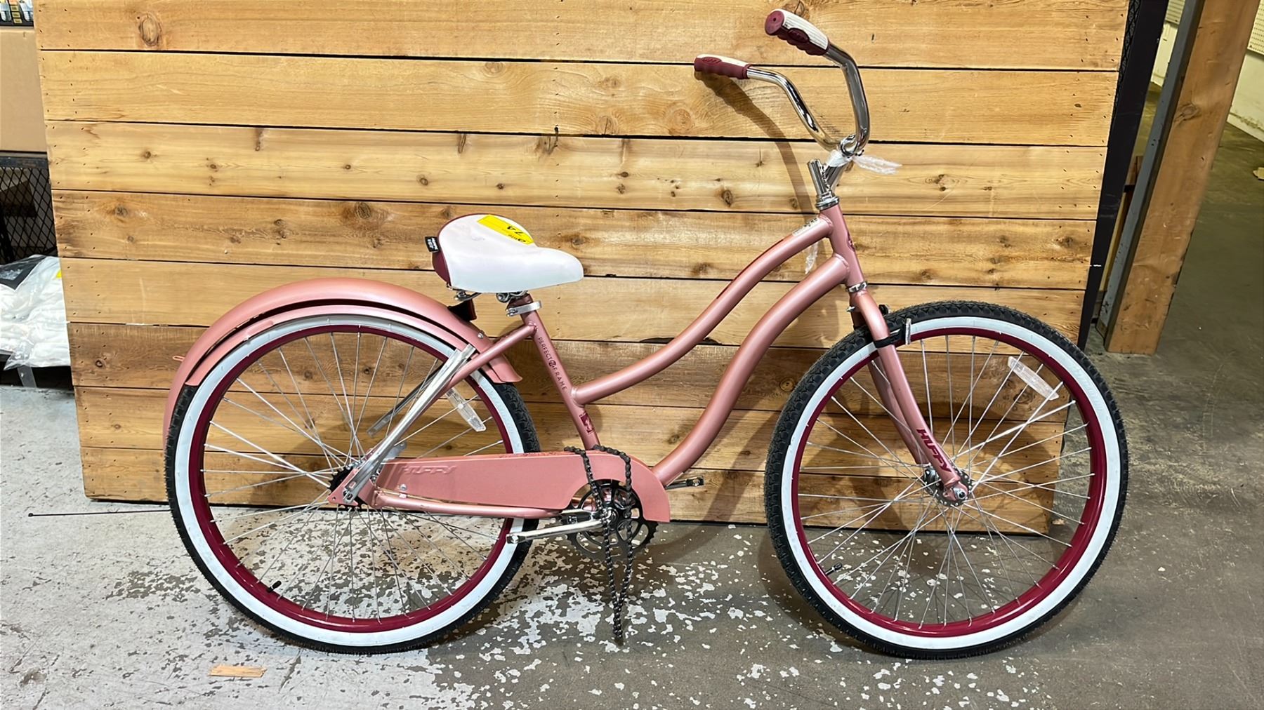 HUFFY PINK SINGLE SPEED CRUISER BIKE *MUDGUARD NEEDS REPAIR*