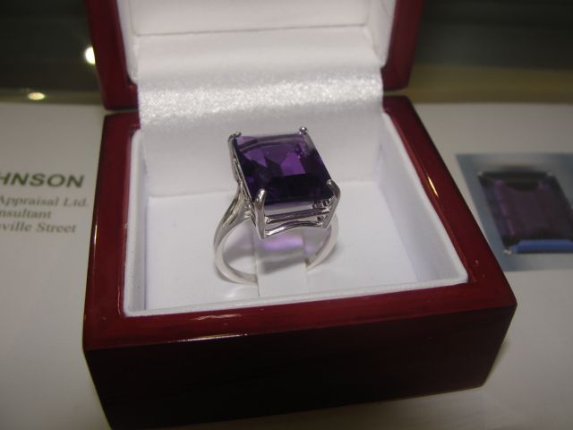 HUGE 16.16CARAT EMERALD CUT AMETHYST RING. VS CLARITY. INCLUDES $900 APPRAISAL