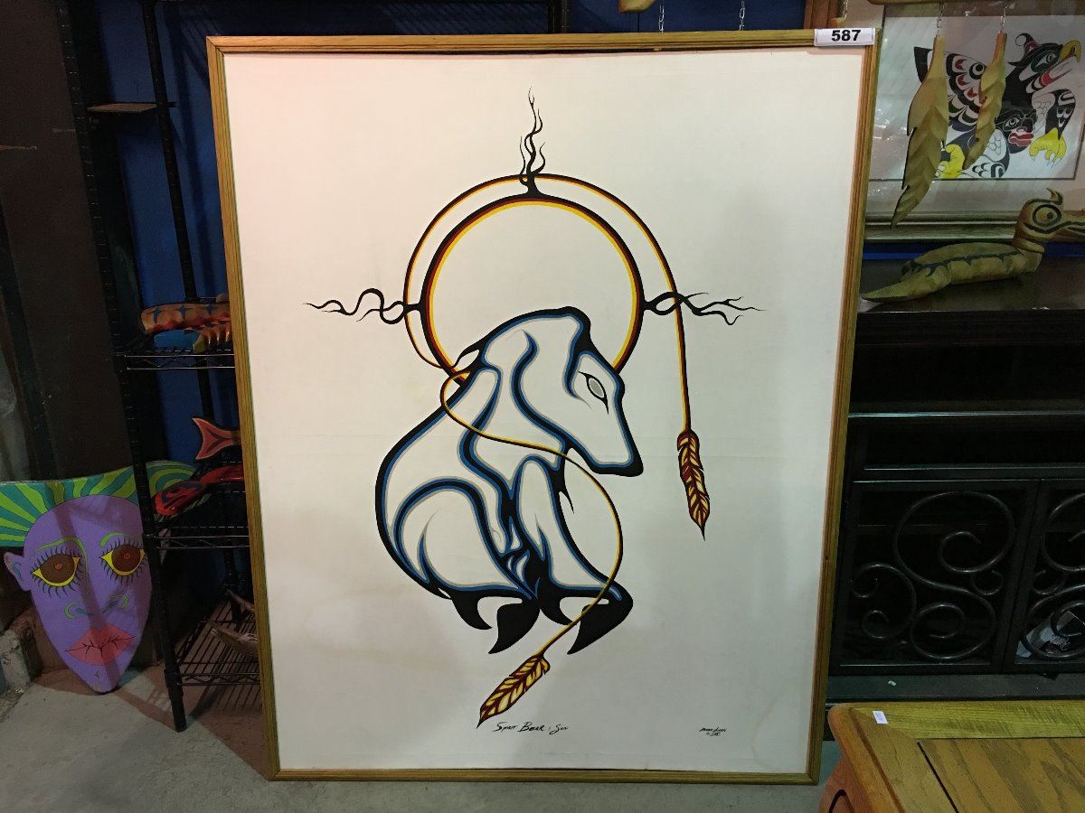 HUGE ORIGNIAL OIL ON CANVAS PAINTING TITLED :SPIRIT BEAR & SON" DERICK HEATON 46.5" X 59.5" ( SOME MINOR WATER STAINS PRESENT)