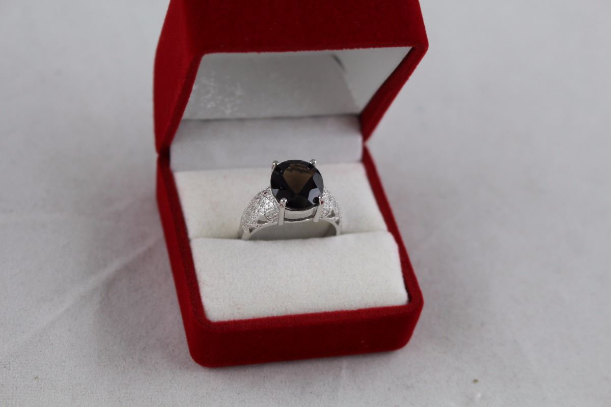 HUGE SMOKEY TOPAZ RING SET WITH 24 SWAROVSKI CRYSTALS, STERLING SILVER, RETAIL VALUE $300