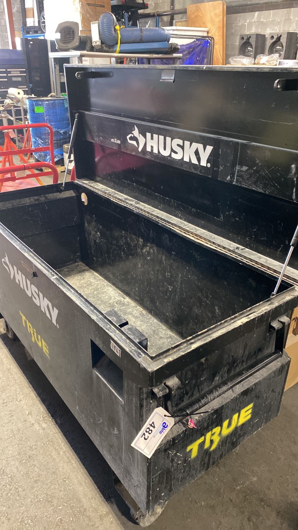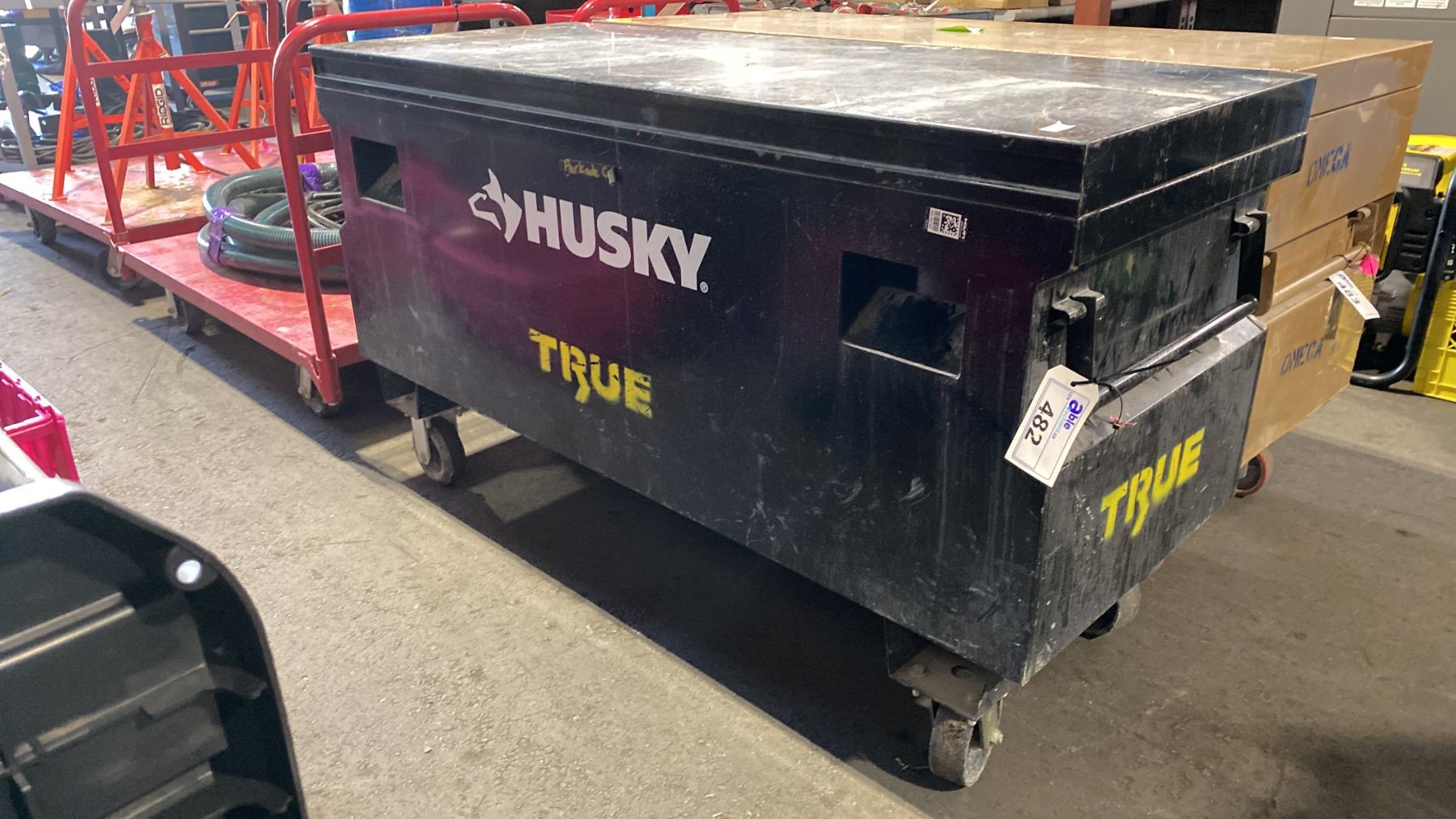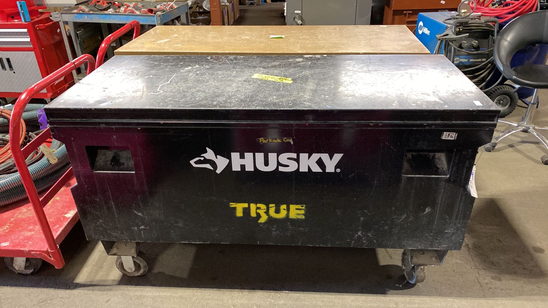 HUSKY BLACK METAL MOBILE INDUSTRIAL JOB BOX APPROX 60"L X 24"D X 35"H