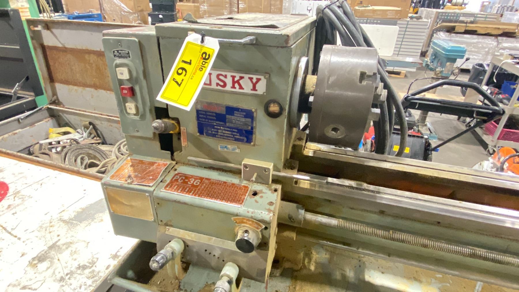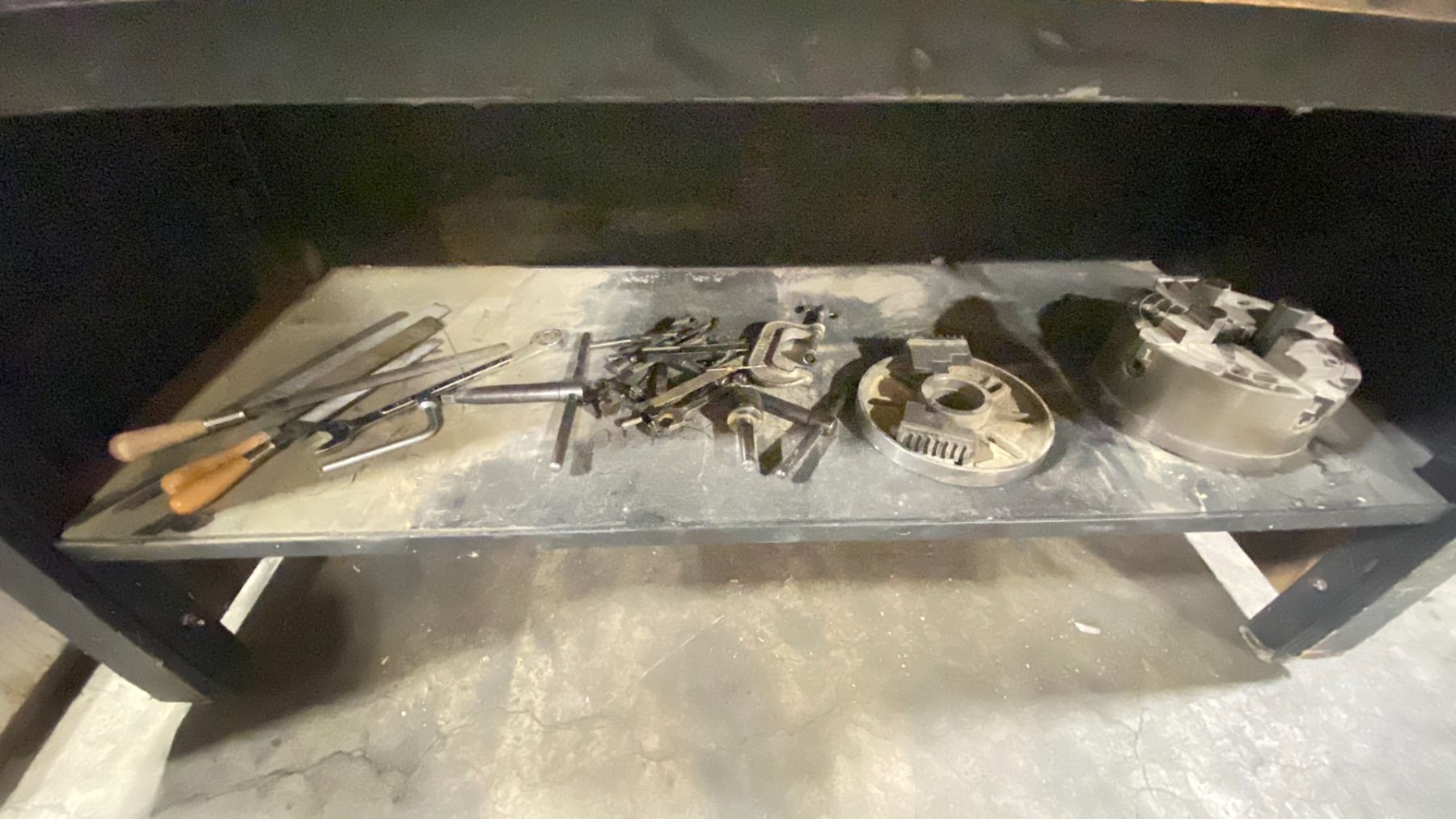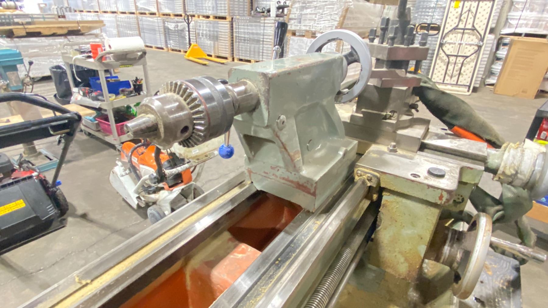 HUSKY PC-36 INDUSTRIAL LATHE ON WOODEN STAND WITH ASSORTED BITS & TOOLS INCLUDED APPROX 5'W X 2.2'D X 4.5'H