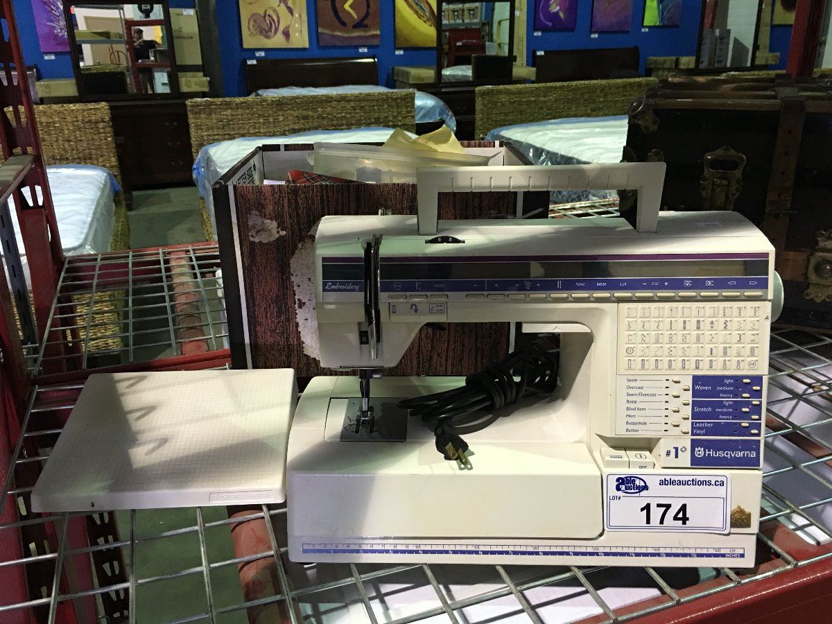HUSQVARNA EMBROIDERY SEWING MACHINE COMES WITH BOX OF ASSORTED SEWING ACCESSORIES
