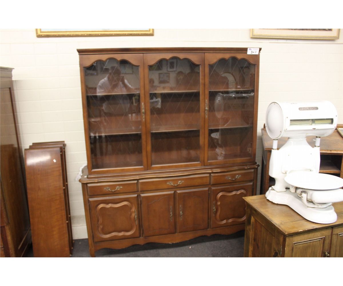 HUTCH WITH CUT GLASS WINDOWS 3 PANELS WIDE