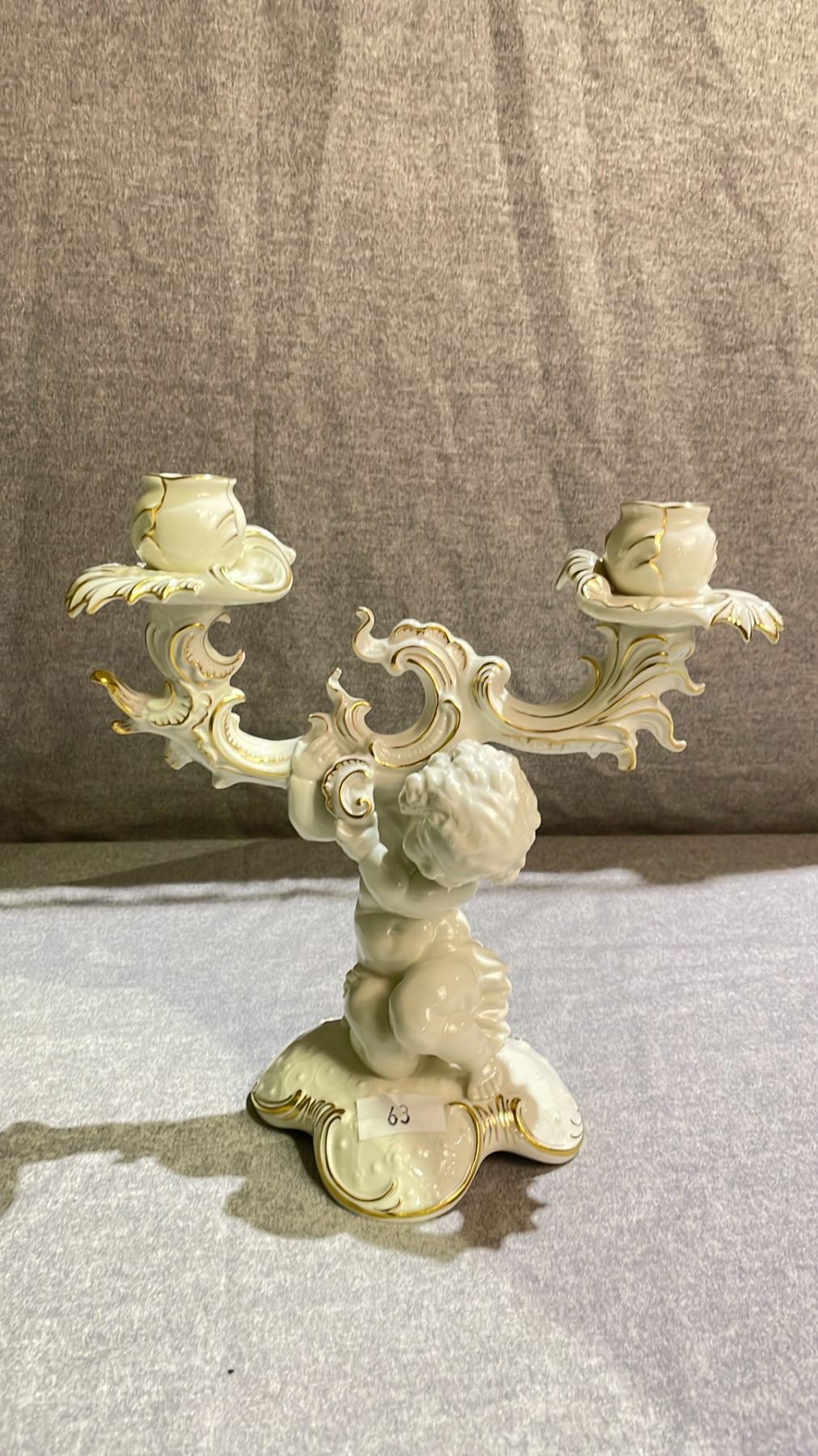 HUTSCHENREUTHER SELB KARL TUTTER CHERUB MOTIF PORCELAIN CANDLE HOLDER 11" TALL