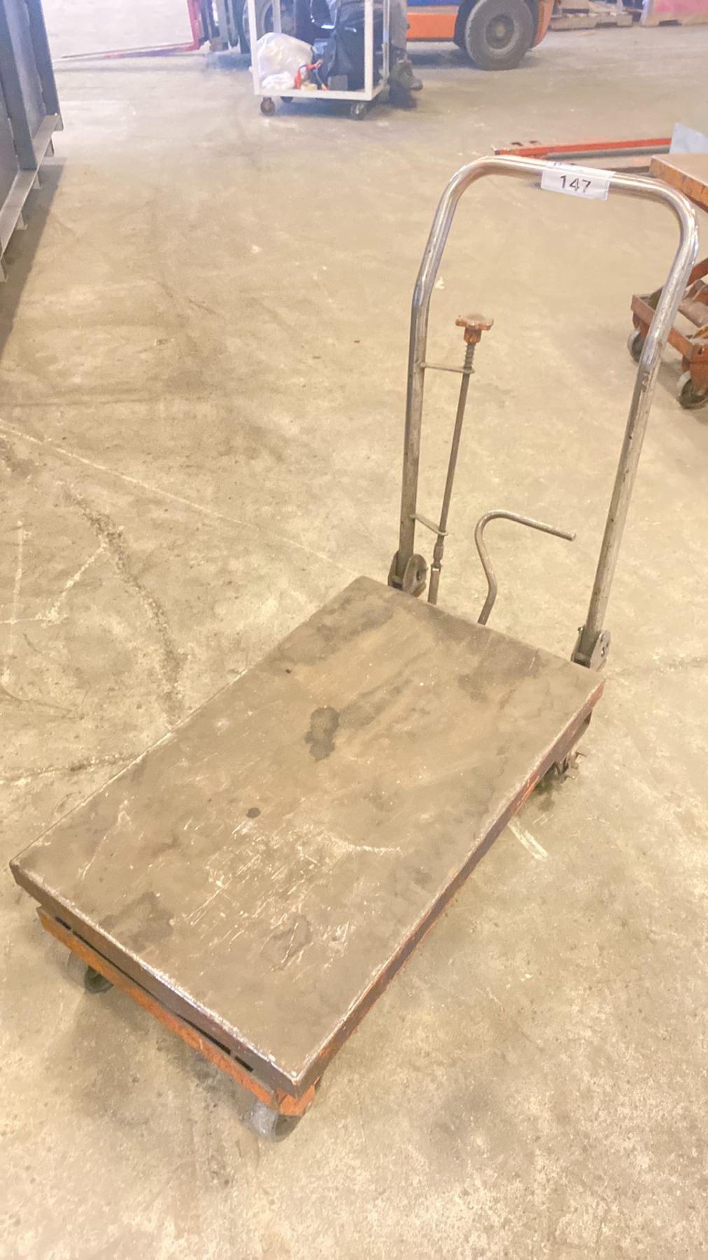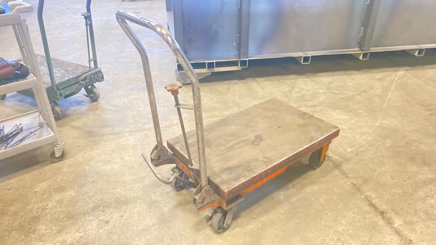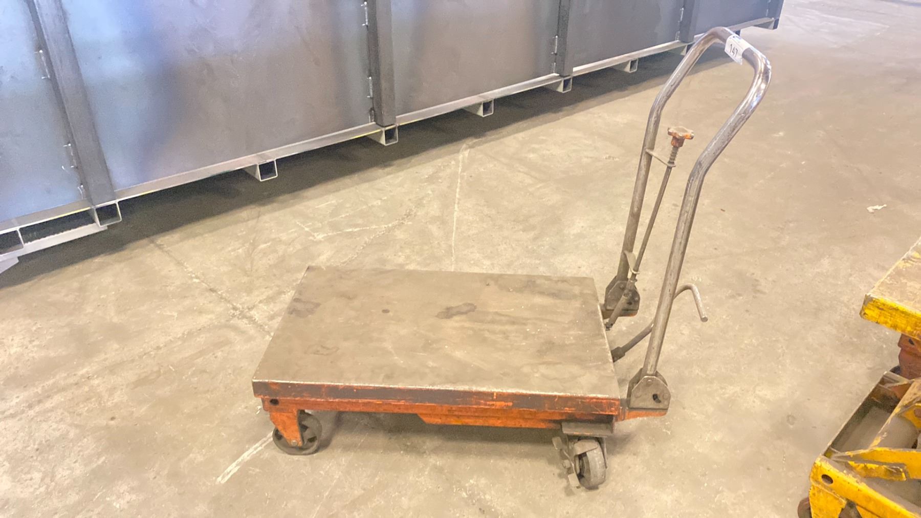 HYDRAULIC LIFT MOBILE PLATFORM DOLLY * MAY REQUIRE REPAIR OR HYDRAULIC FLUID *