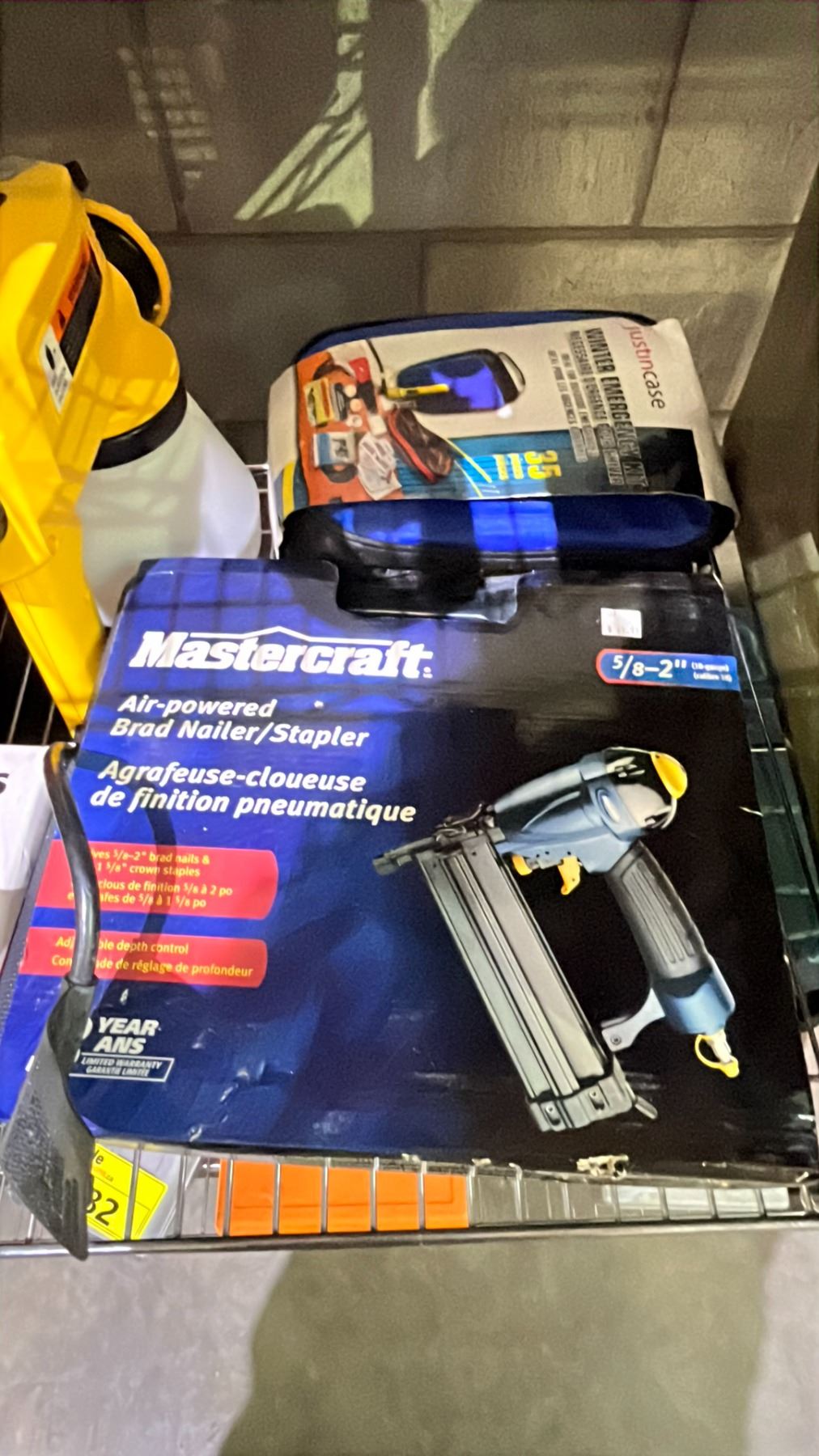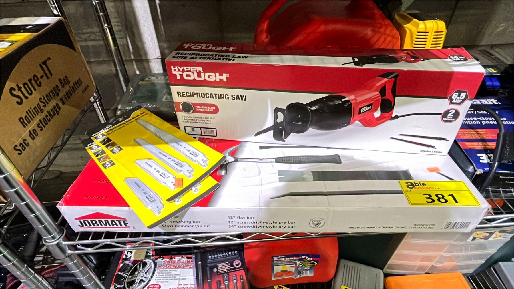 HYPER TOUGH RECIPROCATING SAW JOBMATE WRECKING BAR SET, JERRY CANS, MASTERCRAFT AIR POWERED BRAD NAILER/STAPLER, WINTER EMERGENCY KIT & MORE
