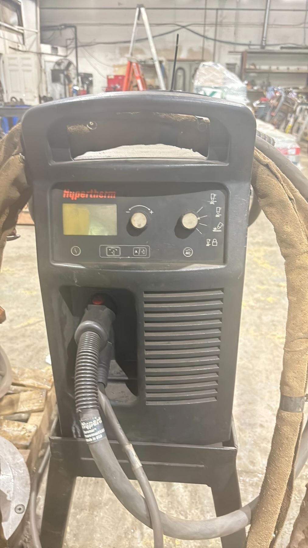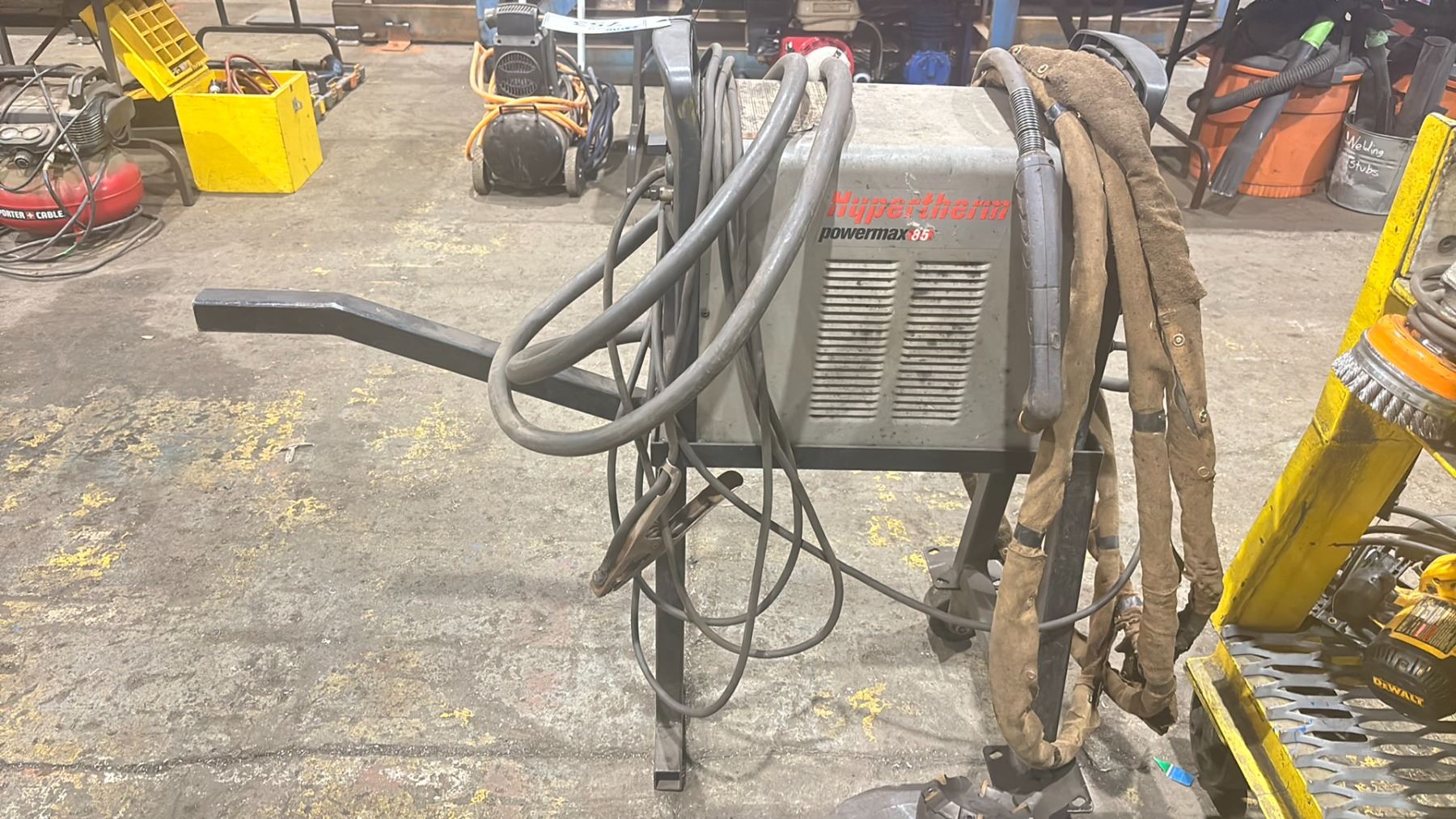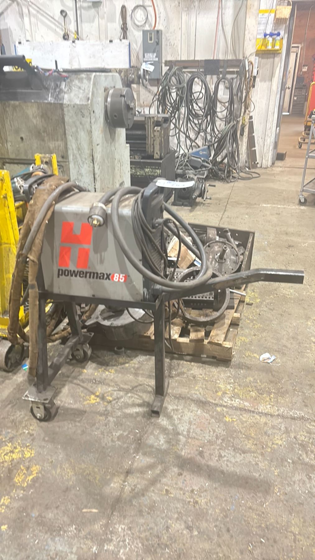 HYPERTHERM POWERMAX 85 PLASMA CUTTER ON A STEEL MOBILE CART