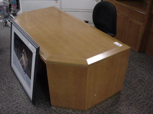 Honey Maple 3 Piect Corner Cut Executive Suite With Wall Unit And Cradenza